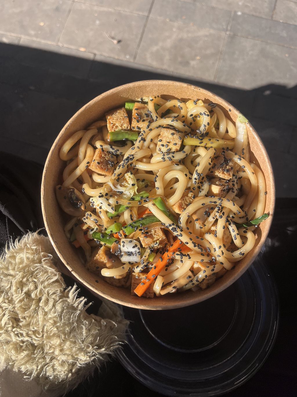 Pedí los tallarines con tofu y salsa de coco, muy ricos y sabrosos. Por poner una pega, eran pocas las opciones veganas (y los fideos yakisoba tienen huevo y no lo avisan en la carta)