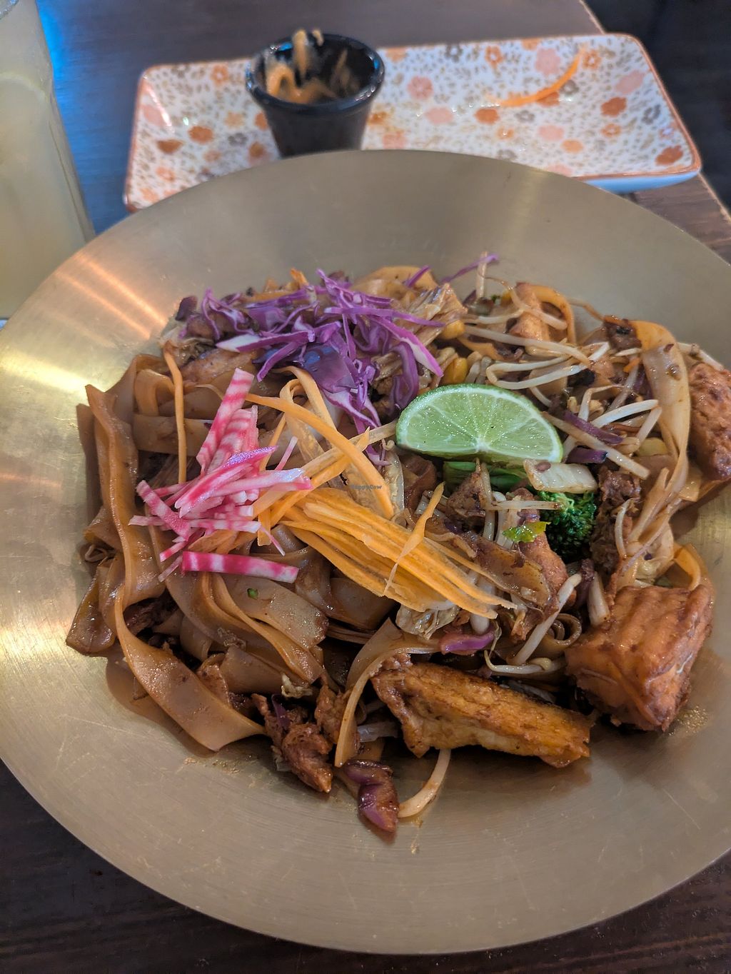 We ordered Tom Khaa 'chicken' and it's probably the best Tom Khaa we've ever had -- fresh vegetables, great tasting faux chicken, and just the right amount of spiciness. The Kai Ma Naau (lime 'chicken') was also really good -- fresh and delicious. My husband ordered the Phad Chaa with not really pork belly, which was an awareness-expanding experience. He said that if he didn't know it was vegan, he'd think it was real meat. A nice, cozy and friendly place.