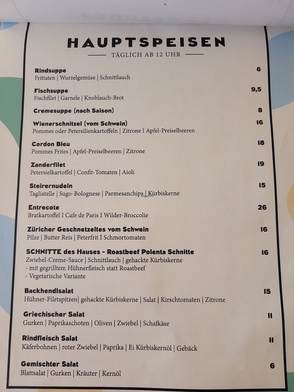 Serves meat, vegan options available. Austrian restaurant offering a few vegan items such as breakfast platter, porridge, risotto, pasta, salad bowl and dessert. Open Mon-Sun 09:00-22:00.