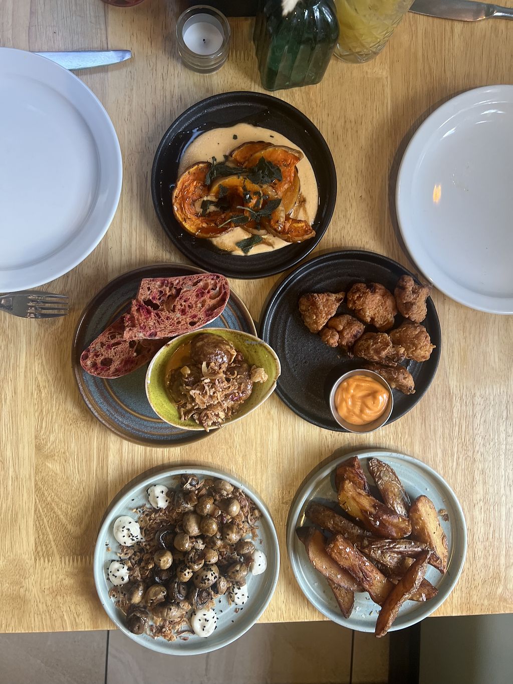 We shared a few tapas dishes including cauliflower wings, plant balls, miso, maple mushrooms, roasted butternut squash and chips, all so delicious! Staff were lovely too and the place is decorated really nicely.