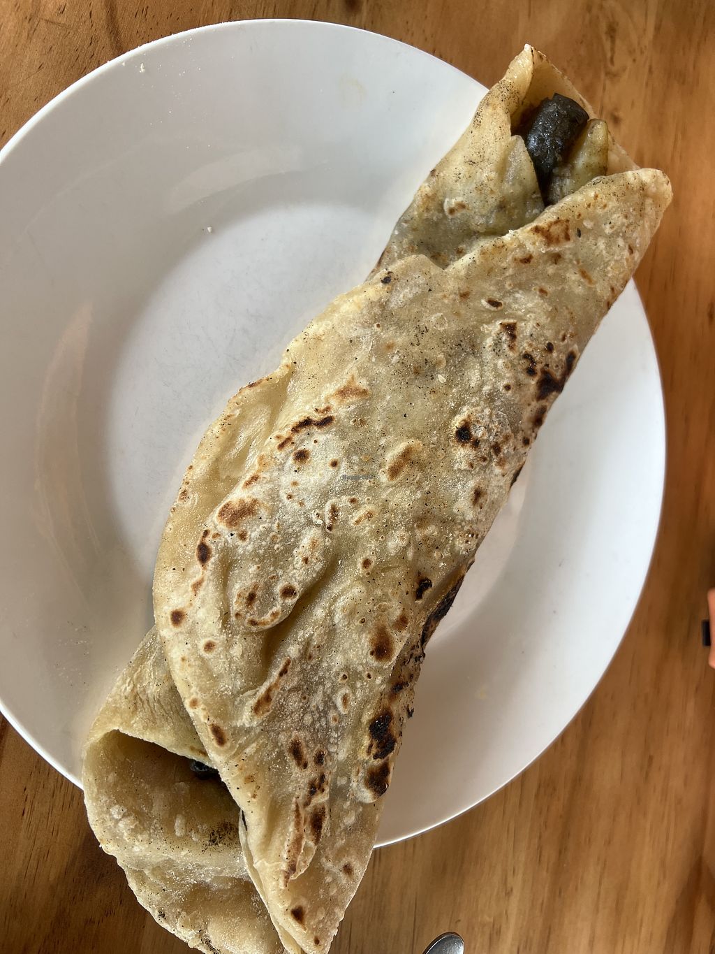 Stopped here after visiting the Quake City museum across the street. I tried their vegan roti and their vegan blueberry muffin (comes with melted vegan butter!). Both delicious. The lady who works there, Shelly, was so friendly and eager to show us all their vegan options. Coming back!