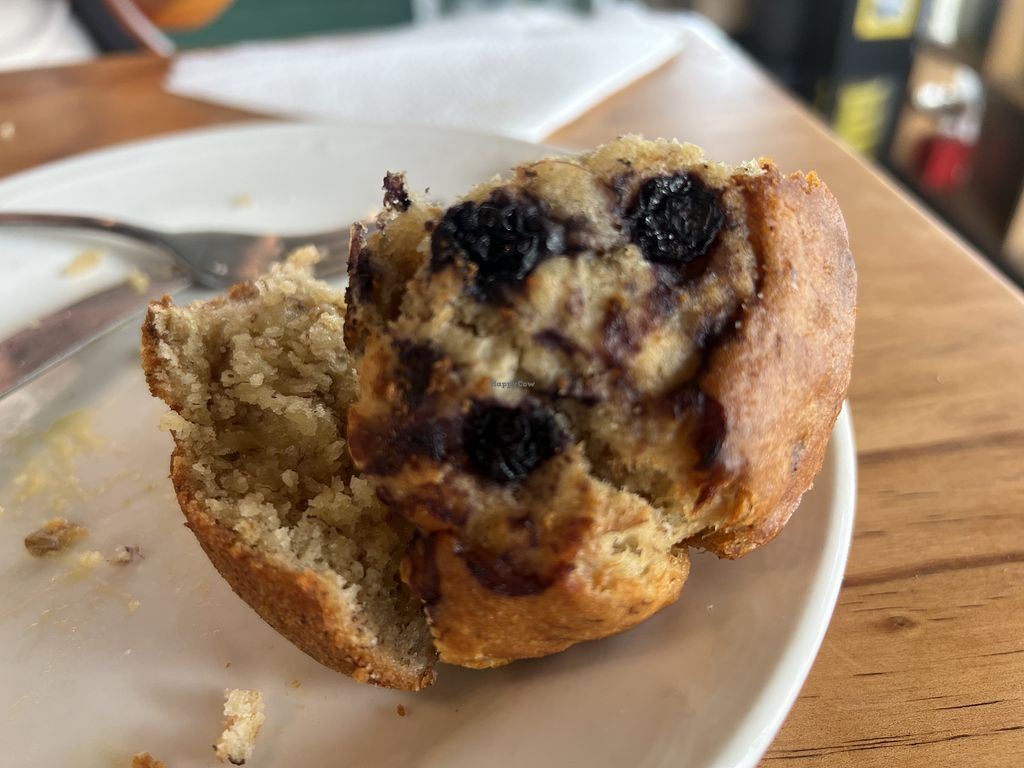 Some good vegan options, including curry plate with roti, all-day vegan breakfast, muffins, banana bread and juices. I enjoyed the vegan breakfast with its avocado on homemade bread, hash brown, sautéed mushrooms, fresh spinach and sliced tomato. I took away a vegan blueberry/banana muffin for next morning - it’s large, moist and good.