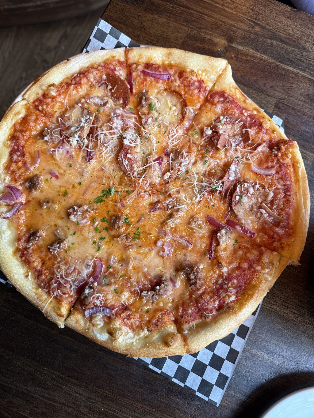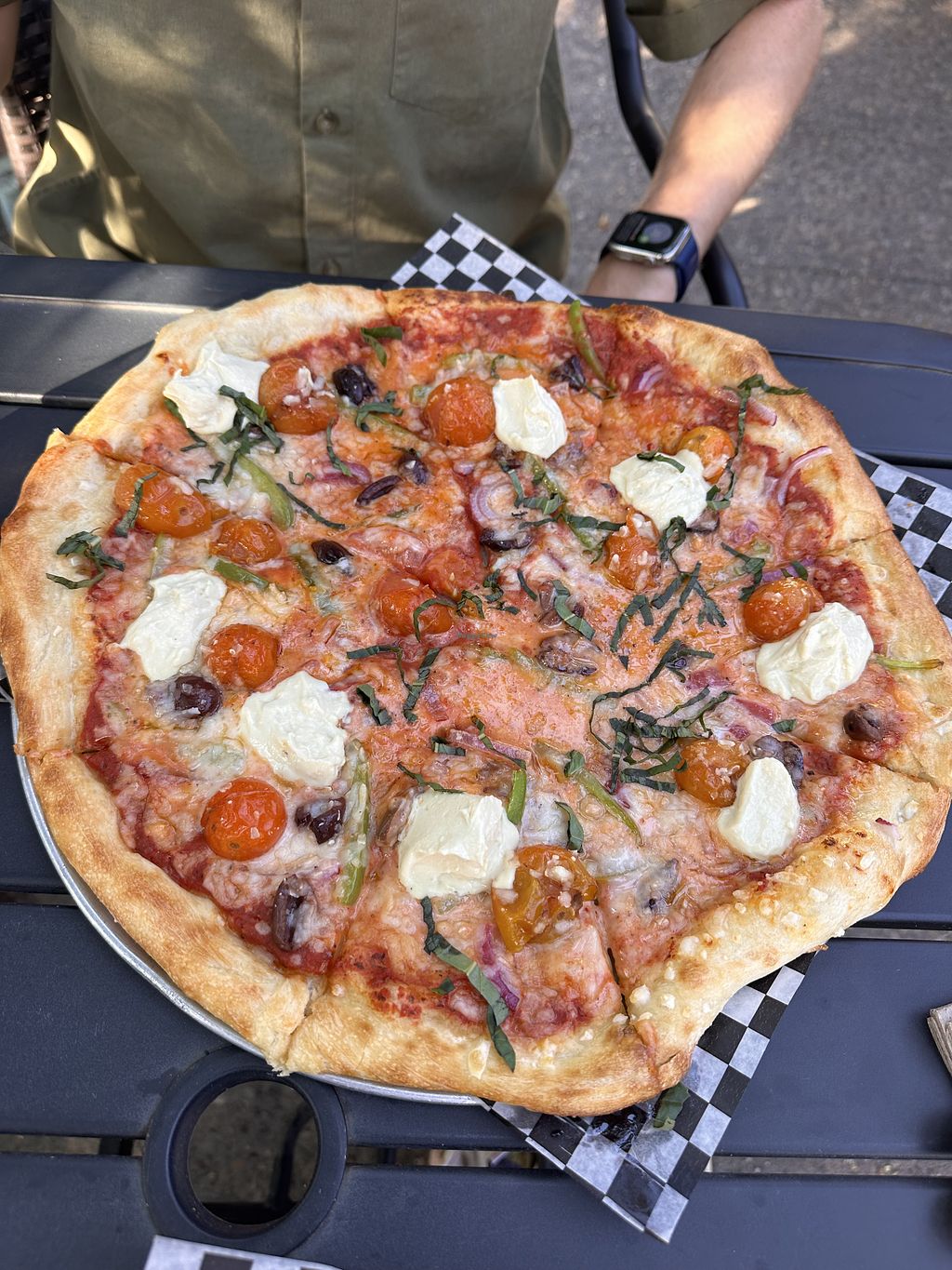 Amazing pizza, and great space too. We had the to hell and back and dill pickle. Both excellent! Hand tossed fire roasted pizza. Great to find a 100% vegan pizza place! Lot's of local drink choices as well, with local breweries and distilleries available.