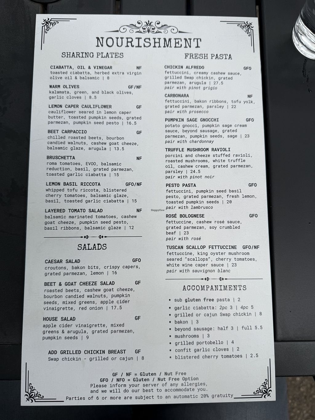 Excellent pasta! We started with an app of lemon basil riccota with gluten free naan. It was excellent and the gluten free bread was phenomenal. Turns out, it is what they use for their gluten free pizza crust too. We also had the eggplant rose with gluten free pasta, which was good, and the pumpkin sage gnocchi which was outstanding! The ambience is super cute too.