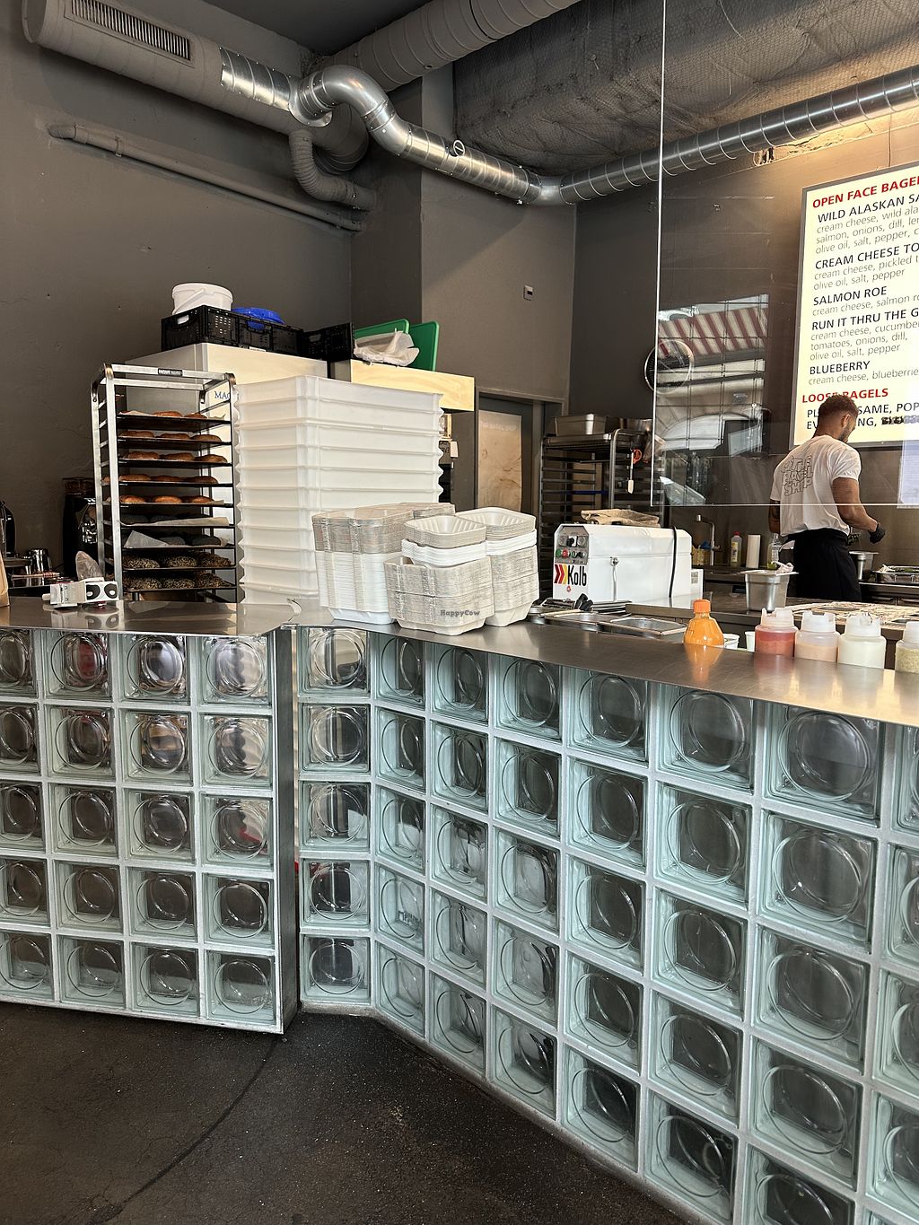 Serves meat, vegan options available. Bagel Shop specialised in house-made, hand-rolled sourdough bagels. Has vegan cream cheese, so most vegetarian bagels can be made vegan. Open Mon-Fri 10:00am-6:00pm, Sat 10:00am-4:00pm. Closed Sun.