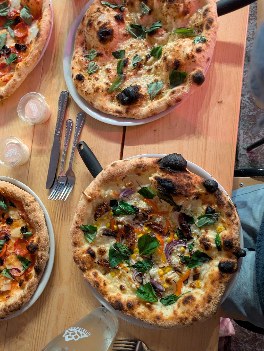 Serves meat, vegan options available. A pizza restaurant and bar. A unique ordering system where you tick what you would like and build your own pizza., Vegan pizza
