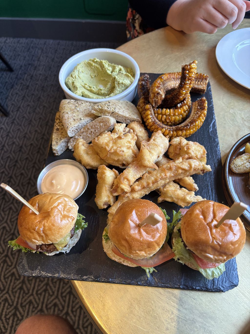 We ordered a vegan sharing planter which came with three plant-based “beef” burgers, tempura veg and deliciously crispy corn ribs.