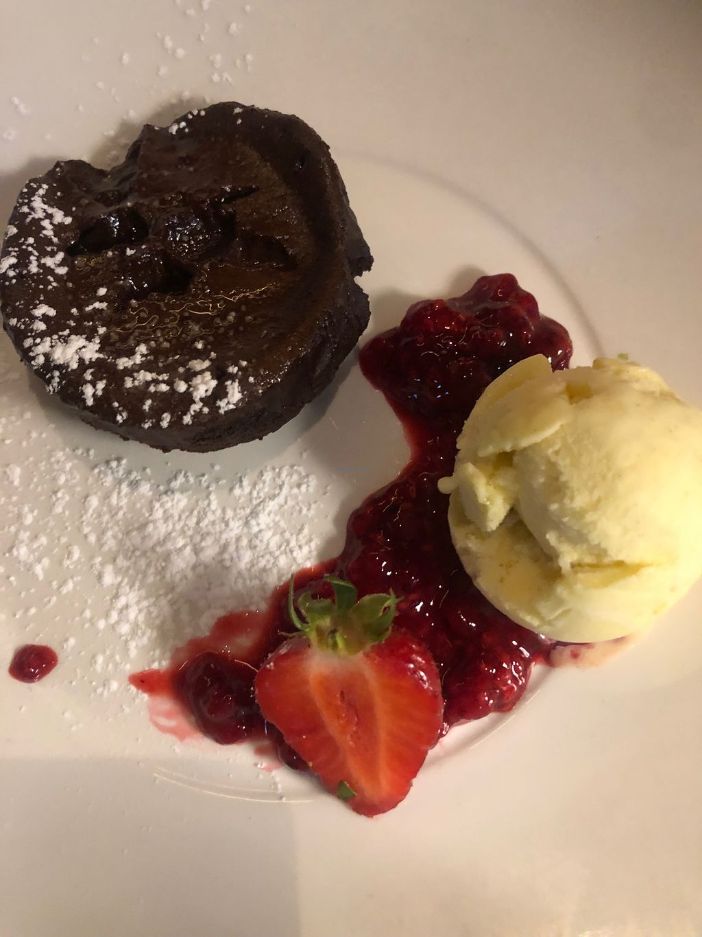 If you're vegan, be sure to ask for the separate vegan menu - it has a handful of options. I had the crispy tofu, which was nice but could have used something fresh on the side. I also ordered a vegetable soup but had to send it back as it unexpectedly contained cream. We shared the beet salad, which was enjoyable, and my highlight was the warm chocolate pudding - delicious, I just wished it was bigger! My family has the apricot tart and enjoyed that as well.