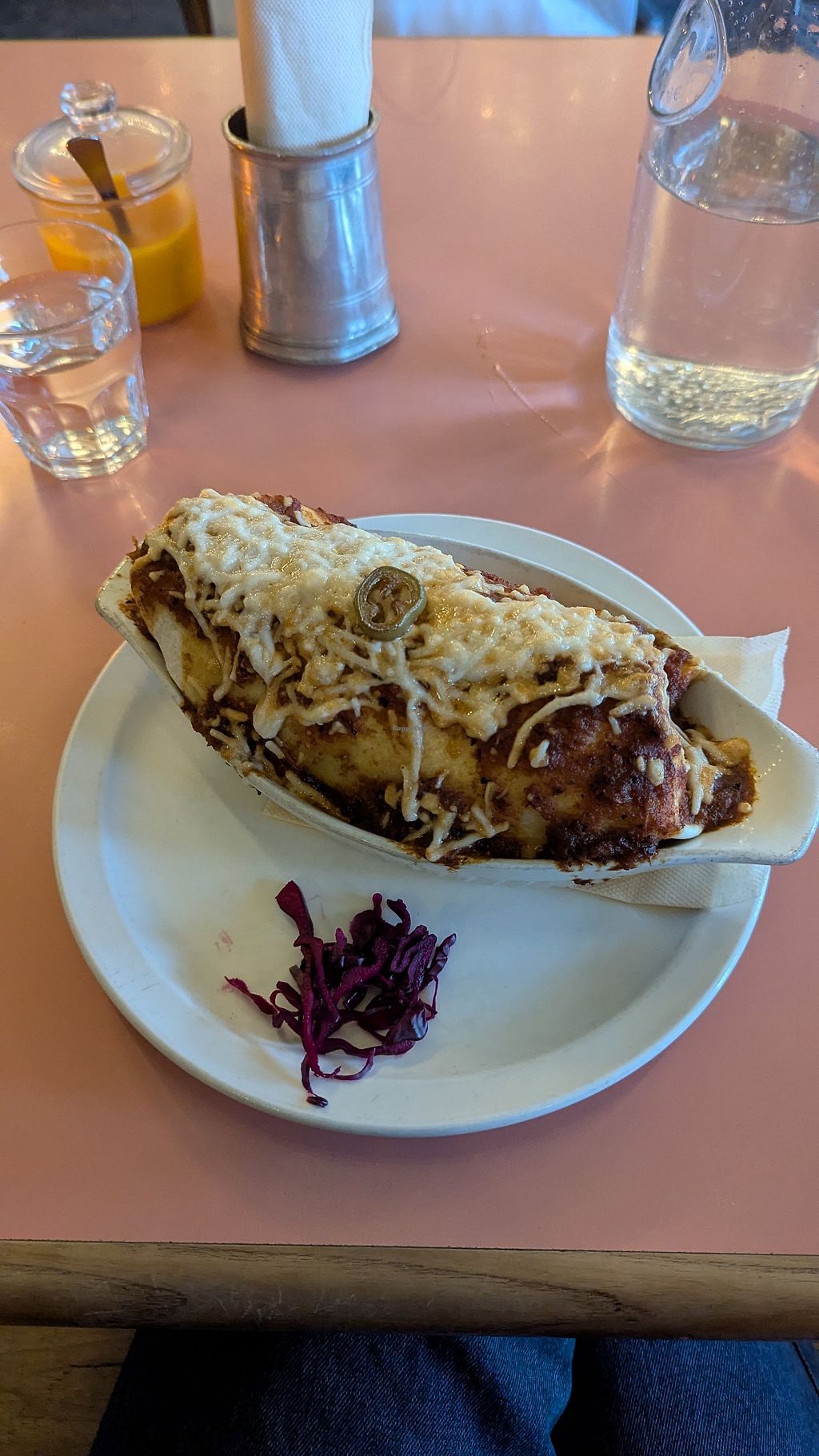 Honestly I think I ordered the wrong thing, or at least the wrong thing for my taste. I picked a burrito that the waitress recommended, and then she suggested I get it baked, which she didn't tell me came with a $5 upcharge. The burrito was good, but it wasn't anything to rave about.
