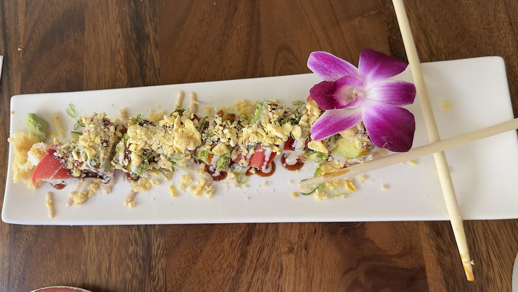 The infuse flavors that combines into a taste with no easy description. Except, I could sit there from opening till closing eating vegan sushi one plate after other. Service excellent preparation and eye appeal over the top 🔝. I would give it five stars, but unable to do so. Tell them Cloud sent you.
