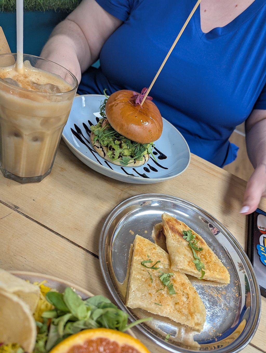 I had the vegan burger. The best one Ive ever had. Served with avacado and salsa and a colourful salad. It looks and tastes amazing . The salads also looked great. I would like to give this 5 stars but this site only allows a maximum of 4 stars if cafe not fully vegan/veggie