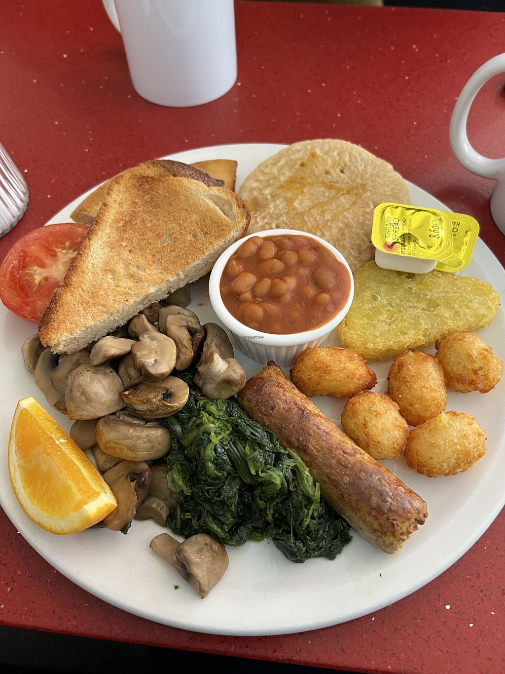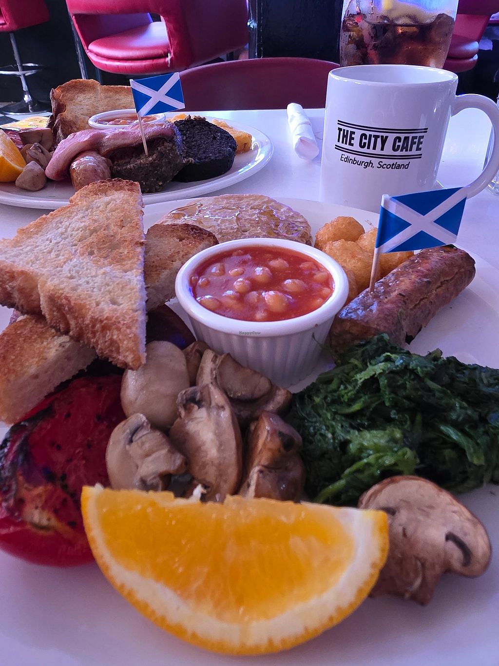 This is an American style diner with a few clearly labelled vegan options. They have soya milk and a fried vegan breakfast. It isn't the best vegan fry up I have had by far, but it wasn't the worst. It could have done with a veggie sausage, although it was nice they had vegan spread and veggie haggis. Overall a little bland and nothing special but I still enjoyed the overall experience and it was nice they have made the effort to have an option and at least add veggie haggis.