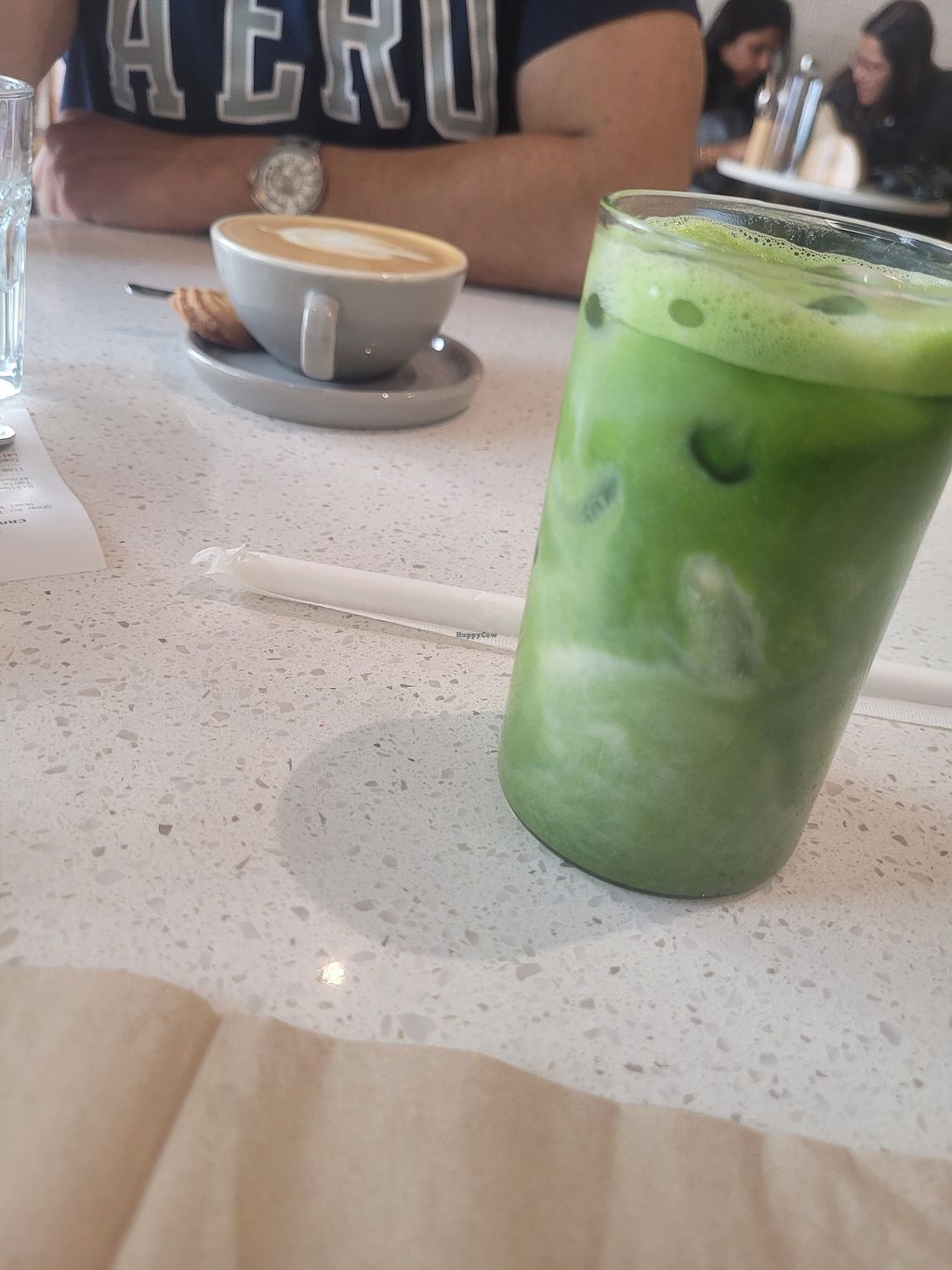 Not great service - we didn't get greeted on our way in and sat at a table and were told there was a waiting time when two tables were free.
