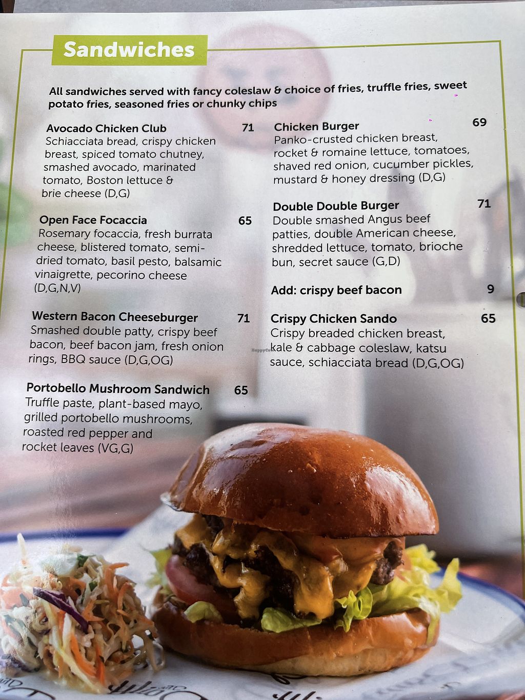 Serves meat, vegan options available. A lifestyle restaurant offering comfort foods. Vegan items are labelled and include acai bowl, vegan meatball sub, flatbread with vegan cheese, vegan steak tacos, salad with vegan chicken strips/falafel, chocolate cake and cheesecake. Open Mon-Sun 6:30am-11:30pm.