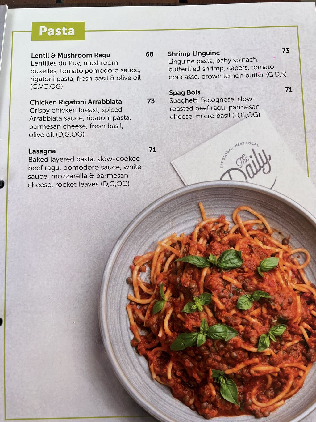 Disappointingly, the vegan meatball sub is no longer available, replaced by a Lentil Mushroom Ragú Pasta instead.