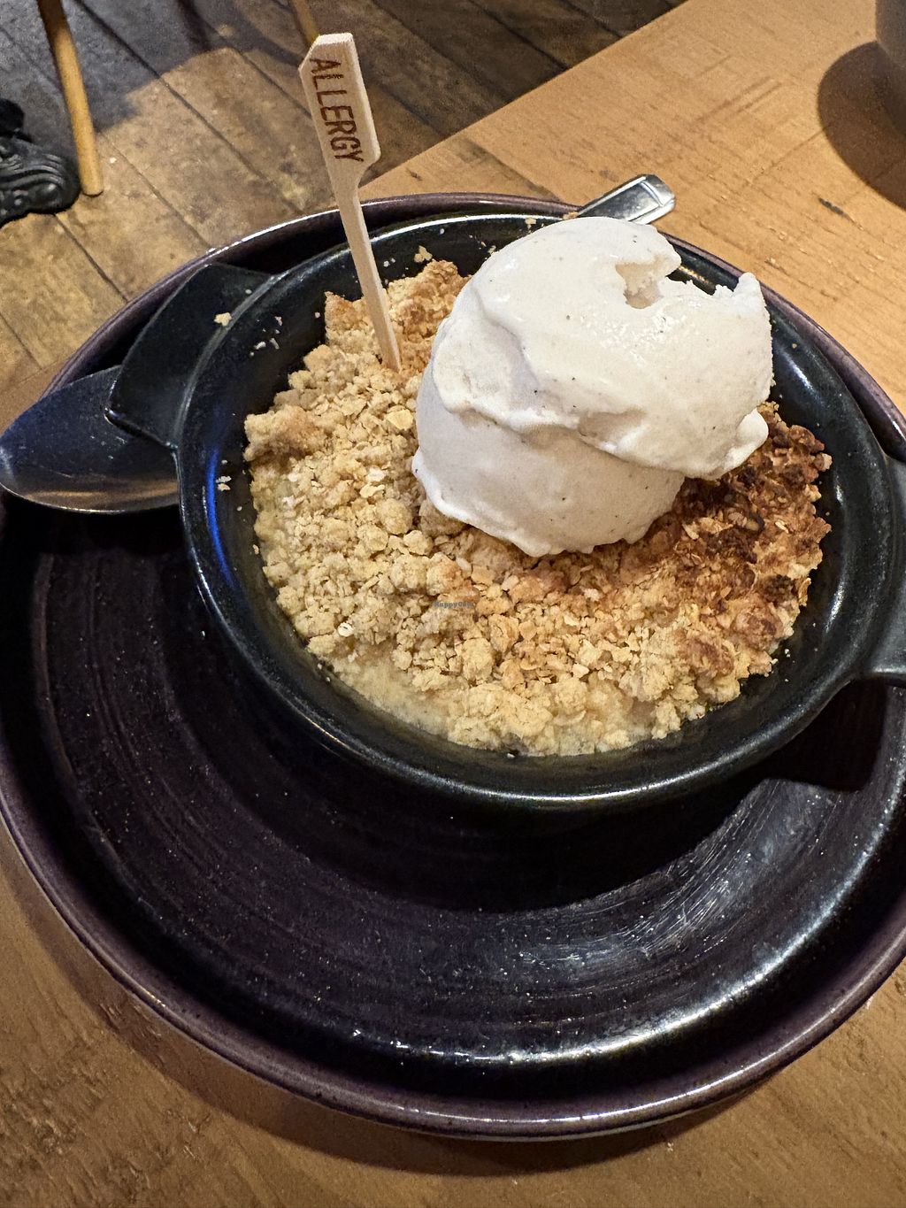The starter of the tempura cauliflower was lovely but the mains were disappointing. I'd been a few years ago where there were better choices (I'd had a vegan thai curry). Now there is no seperate vegan menu and I had the tofu kebab which was nice but dry as there is no sauce. My husband had a black bean and chickpea hot dog which was nice. But there was no variety. All mains came with chips and salad.