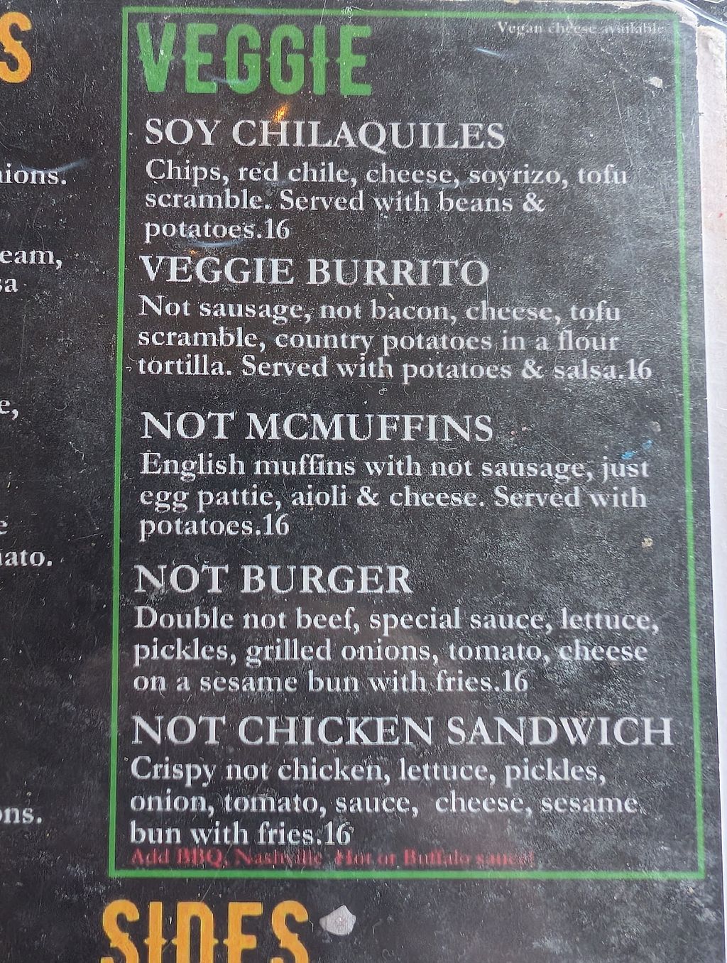 Read moreSoy chilaquiles - 9/10. Super flavorful, huge serving with refried beans and country potatoes. On the spicier side. Was extremely filling, a little greasy but very satisfying. Would definitely order again.