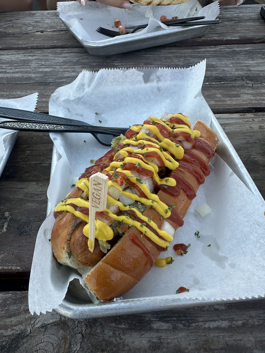 Wow! The vegan chili and queso dog was amazing!! 10/10 (forgot the actual name). Fair prices, I think this one was 10$ and it’s a locally owned spot.