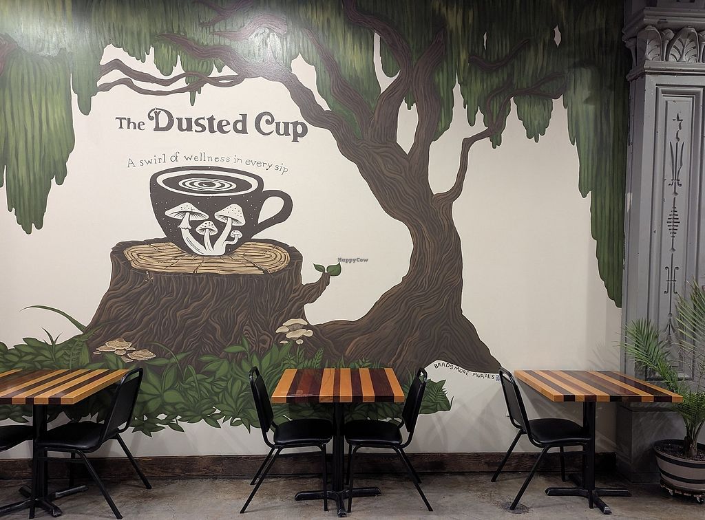 Fully vegan mushroom-focused café. Offers plant-based lattes and mushroom coffee alternatives, plus "shroomthies" made with functional mushrooms such as reishi, lion’s mane, and cordyceps. Food menu includes vegan breakfast wraps, house-made soups, sandwiches, bagels with vegan schmears, soy curl wraps (buffalo or BBQ), grilled cheese, and more. Most ingredients are organic. Open Tue-Sun 7:00am-3:00pm. Closed Mon.