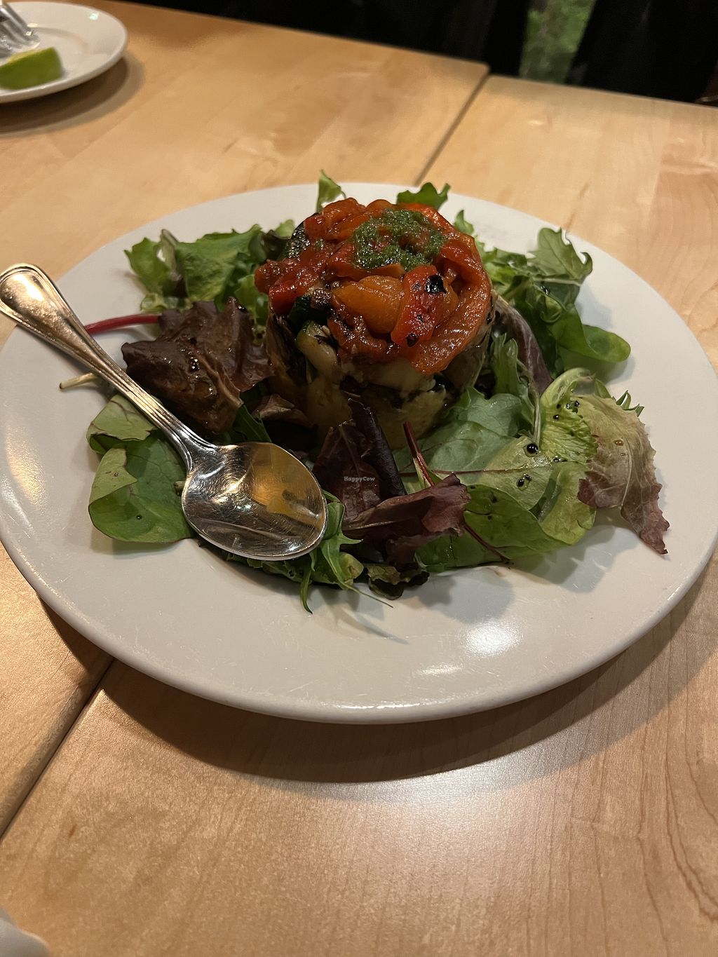 I got the tofu curry and it was absolutely delicious! So filling too. For an appetizer I had the timbale which was seasoned grilled veggies over hummus and greens. Great drinks and service too for a group (vegan and non vegan)