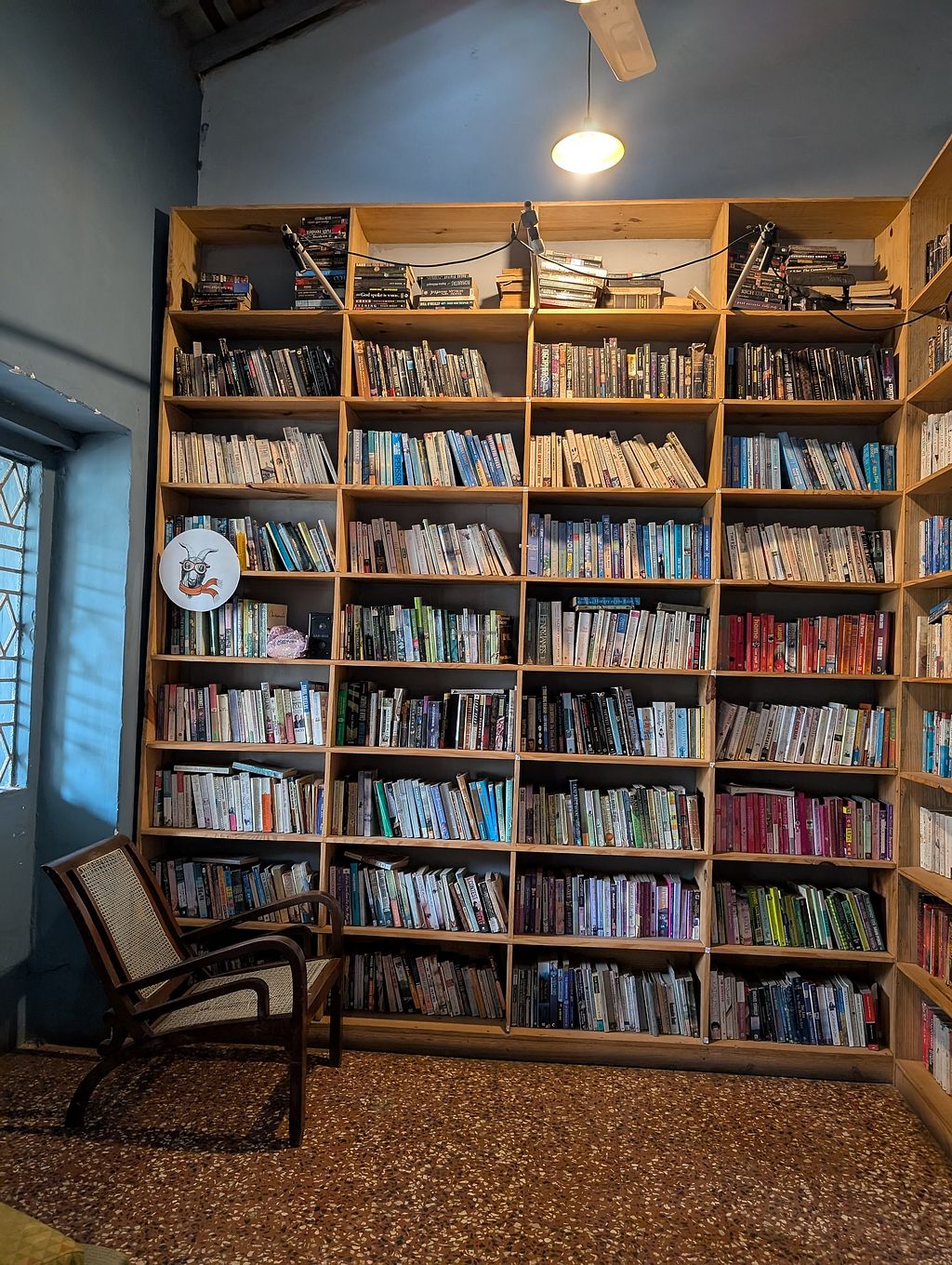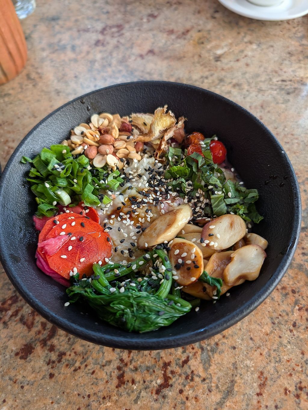 Cafe, restaurant, and bookstore. Has plant milk for hot beverages. vegan food options are labeled and include coconut feni panna cotta and congee. Open Mon-Tue 9:00am-7:00pm, Thu 9:00am-7:00pm, Fri 9:00am-11:30pm, Sat-Sun 9:00am-7:00pm. Closed Wed.