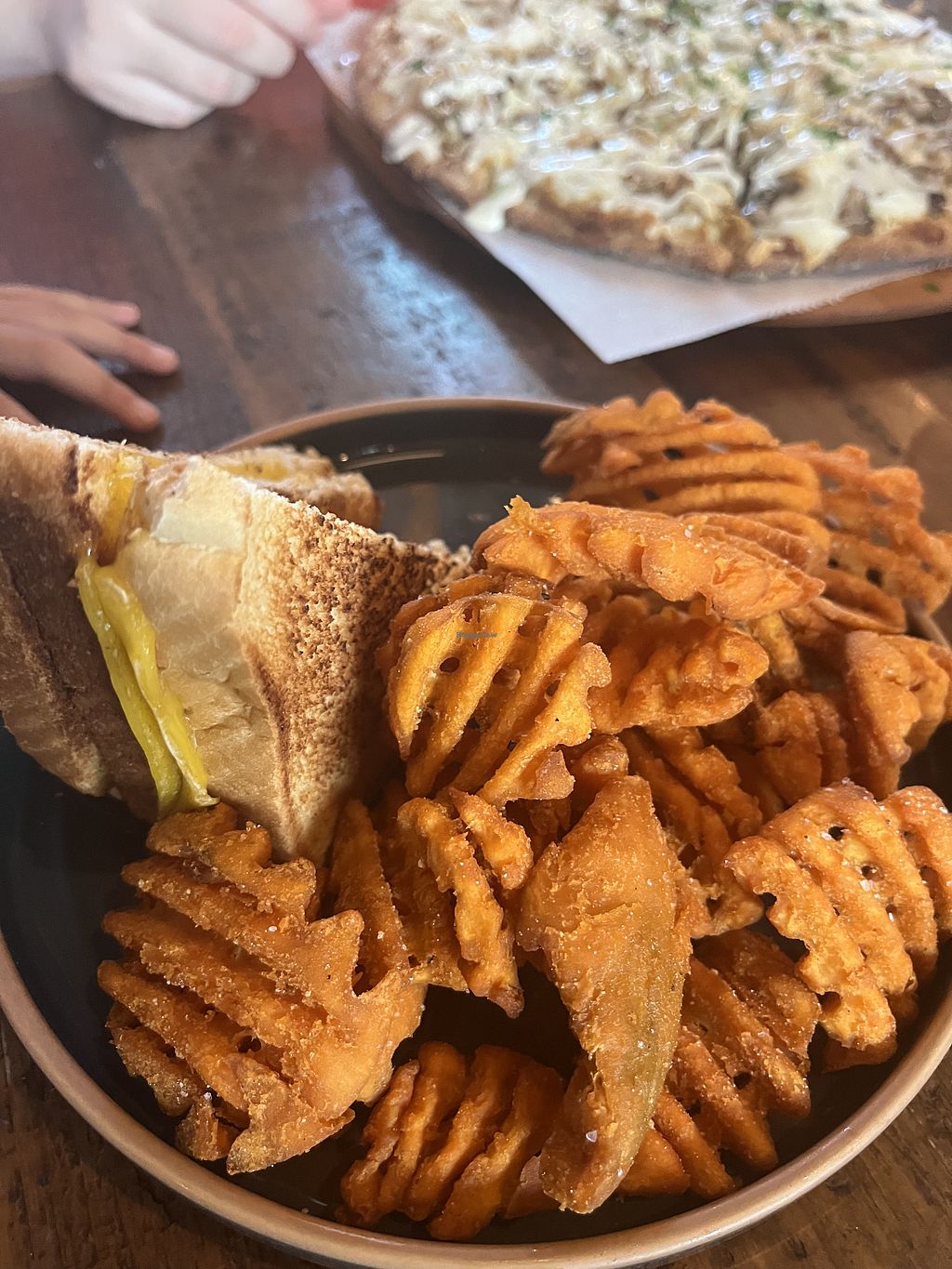 Kids menu was nice. This was a grilled cheese w sweet potato fries