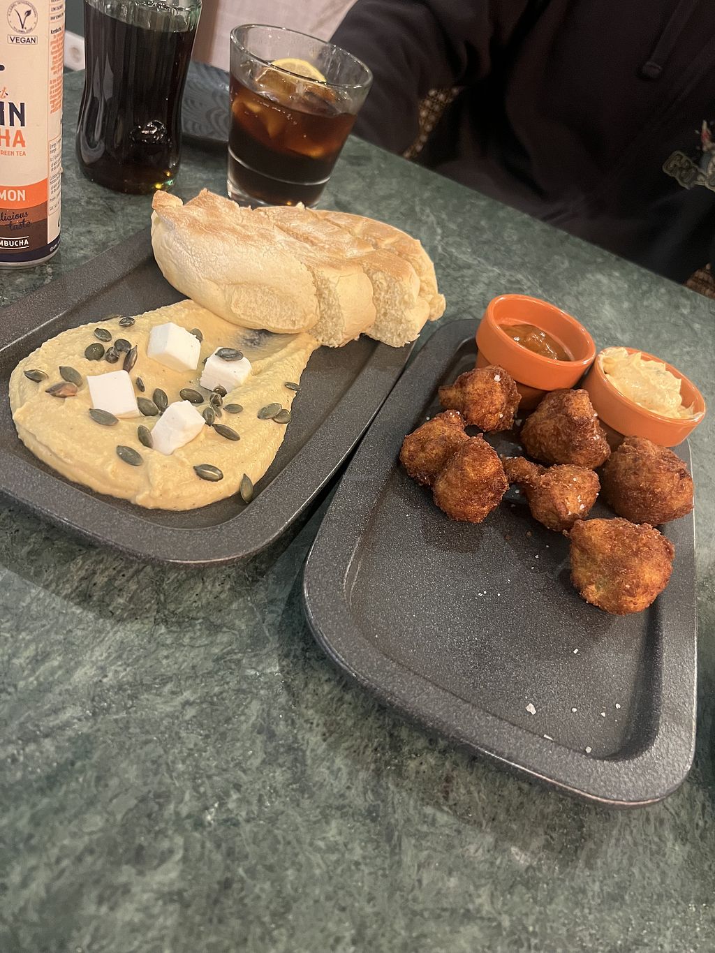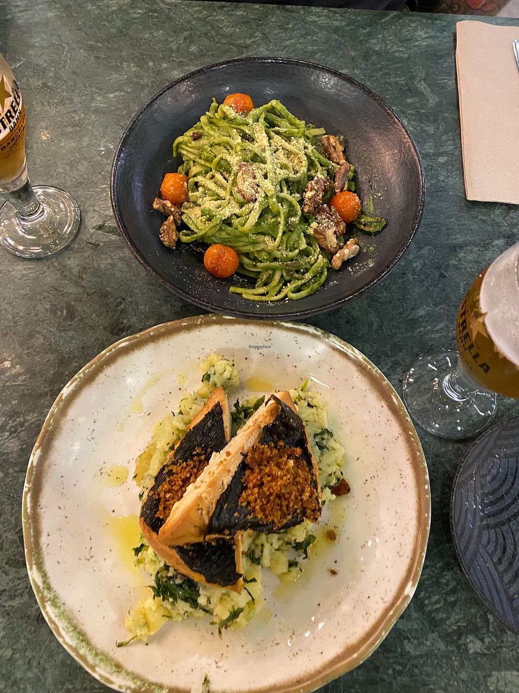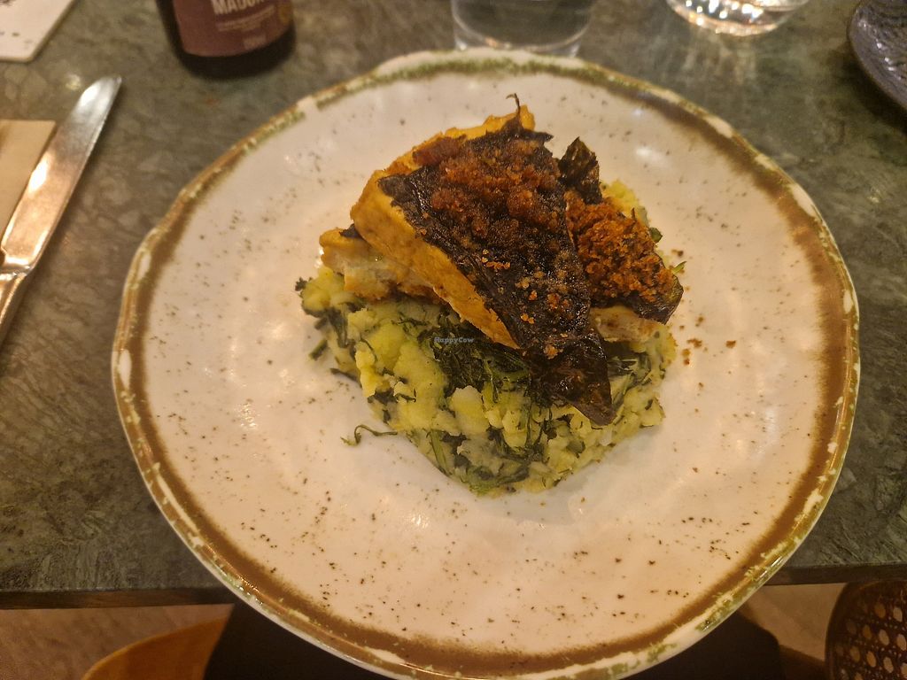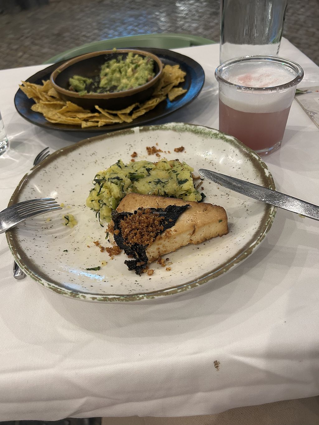 All the food we had was very good … but we thought each food item could have been better… my Seitan steak was more like a huge patty , and the red pesto didn’t really have that much flavor … my wife’s Boneless Lagareiro … seemed to not really have that flavor of seafood as the description says … although it was good Tofu … both appetizers were very good … however the sauces just tasted like regular vegan mayo 🤔