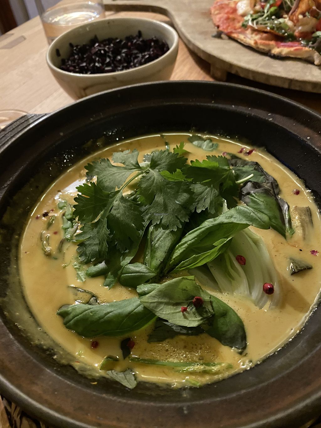 Loved the relaxed ambience, the friendly attentive service and the food. 2 of us came here for lunch. Had starters, mains and dessert - all very generous portions and tasty. I can’t say there was a wow factor about any individual dish, but as a whole it was a really lovely experience, so often lacking for us veggies.