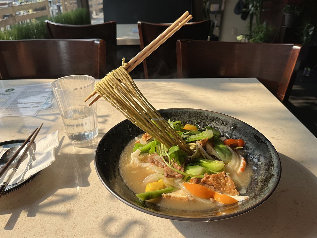 We got the Dan Dan noodles and vegan crispy duck with pancakes—they were both absolutely delicious!! I loved the hot tea and the atmosphere was really nice and calm. The service was also excellent. I thought this was one of the best vegan places I’ve been to and will come back when I’m in Vancouver!