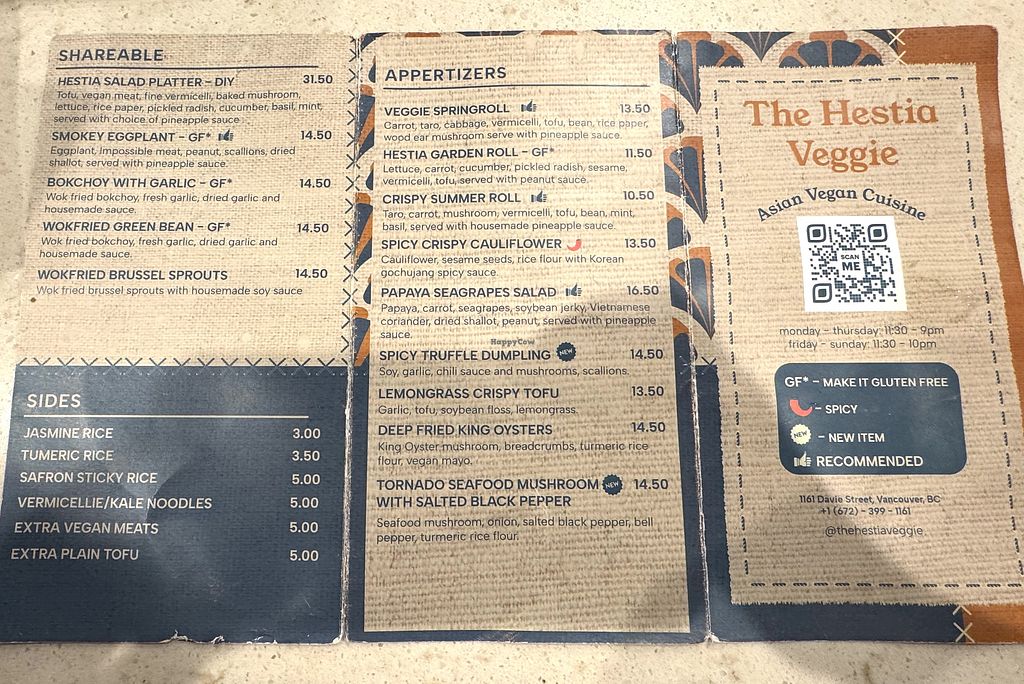 What a hidden gem! I've been to Vancouver many times and I can't believe I've never eaten here before. The Hestia Veggie serves creative vegetarian and vegan Vietnamese food. The food is fresh, flavorful, and vegetable-focused. I especially loved the Vegan Fish Noodle Bowl, which was very unique (after being vegan for 6 years, this was the most realistic "fish" I've ever had!). The portions are generous and reasonably priced. Service was quick and efficient, even during the lunchtime rush. Bright and spacious. Conveniently located downtown, within walking distance of the beach. I will definitely be back!