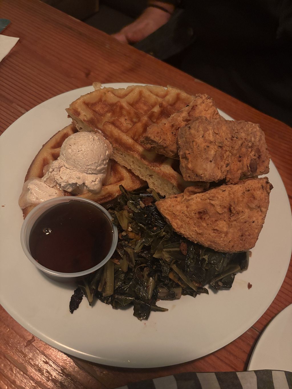 I got the southern plate - had a hard time choosing because everything sounded good! It did not disappoint. I’ve had many vegan Mac and cheeze and this was one of the best. Definitely want to try to chikn and waffles. Solid portion sizes, cute vibe, plus cocktail options & dessert - what’s not to love?