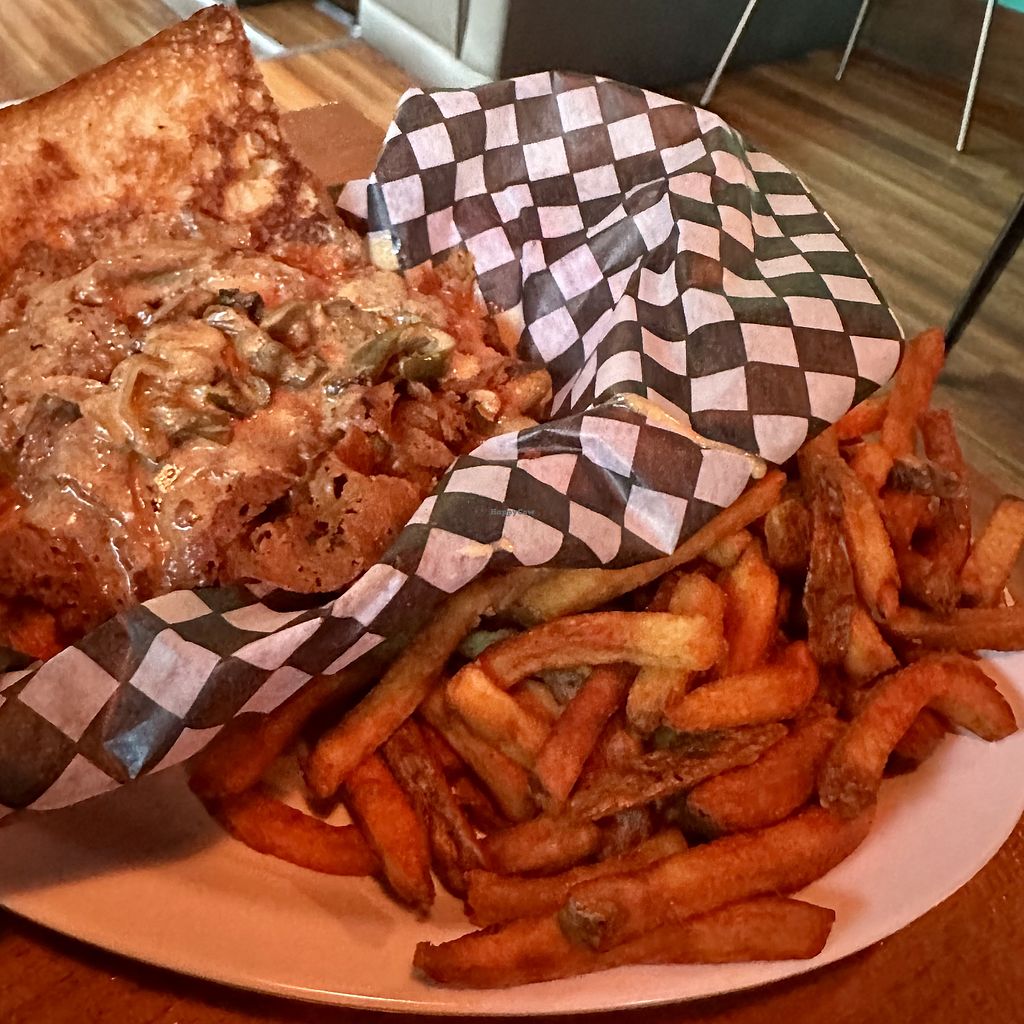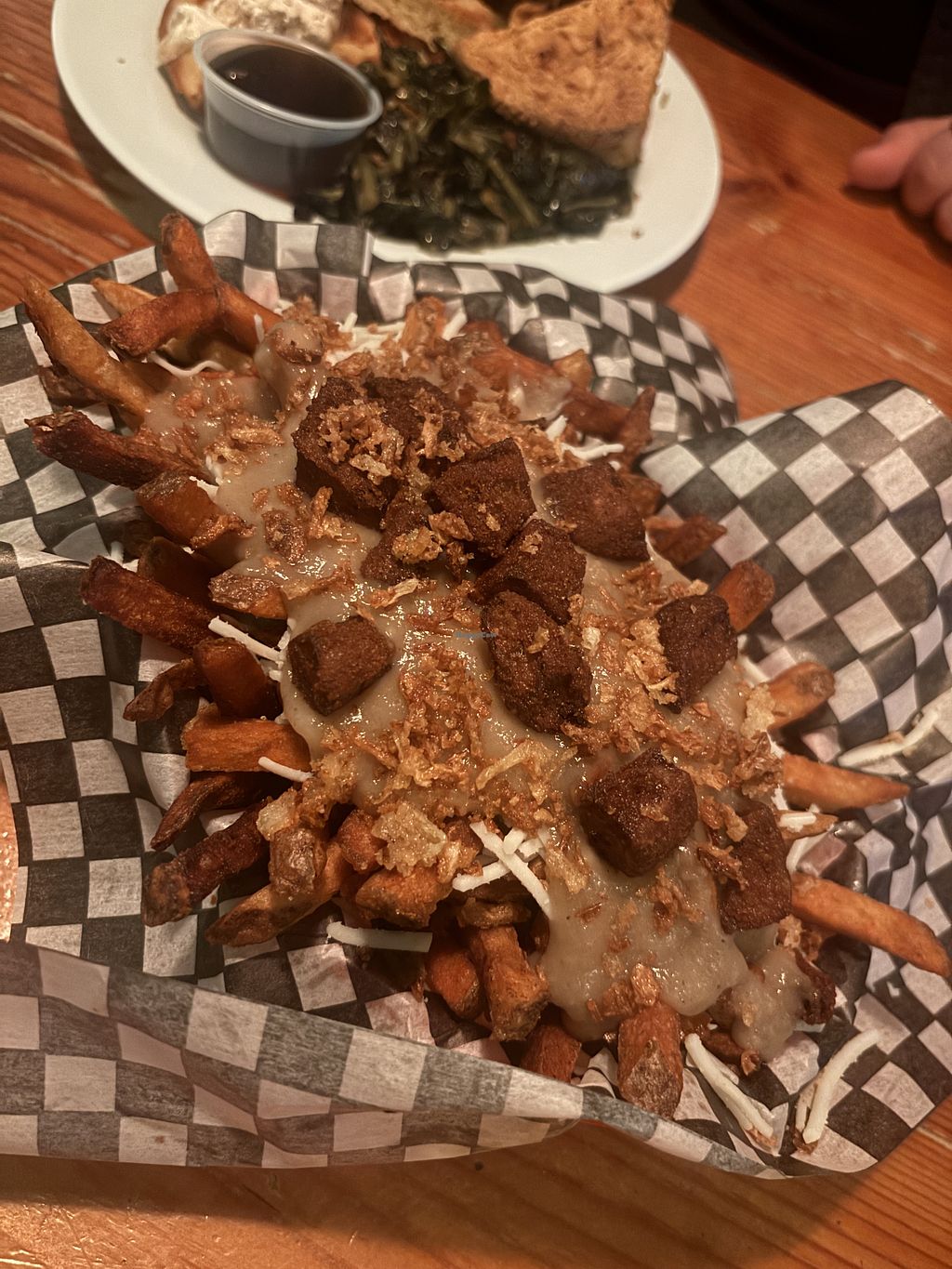 Read moreHogtown's atmosphere is cool and relaxed. The indoor seating is eclectic. The outdoor seating is simple. We ordered the Mac and Cheese, Poutine Dream (when in Canada, and obviously not a Southern U.S. creation), and Seitan Chicken-fried Steak. Warning: Order light because the portions are hospitable at an affordable price. The Mac and Cheese is light, creamy, with a good level of smoke and spice, and topped with breadcrumbs. The Poutine Dream is smothered with a rosemary gravy that sings. The fried seitan strips, chewy and moist, compound the high achievement of this dish. I wished for vegan curds, but the Daiya cheese is a welcome substitute. The Seitan Chicken-fried Steak was the star of the meal, perfectly breaded and fried with an incredibly complex seitan texture that left me wondering if this was house-made or store-bought. Either way, I need more of this "steak" in my life.
