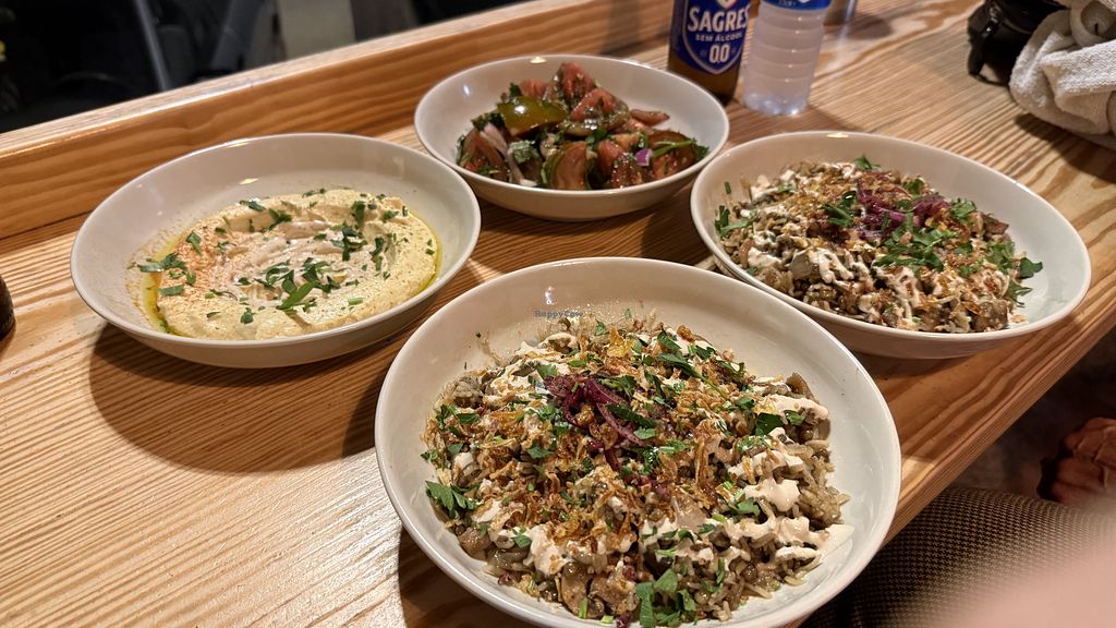 We hebben gesauteerde champignons met linzen en rijst gegeten. Daarbij hummus en salade. Volledig vegan diner. Personeel is heel aardig. Alleen contant afrekenen mogelijk.