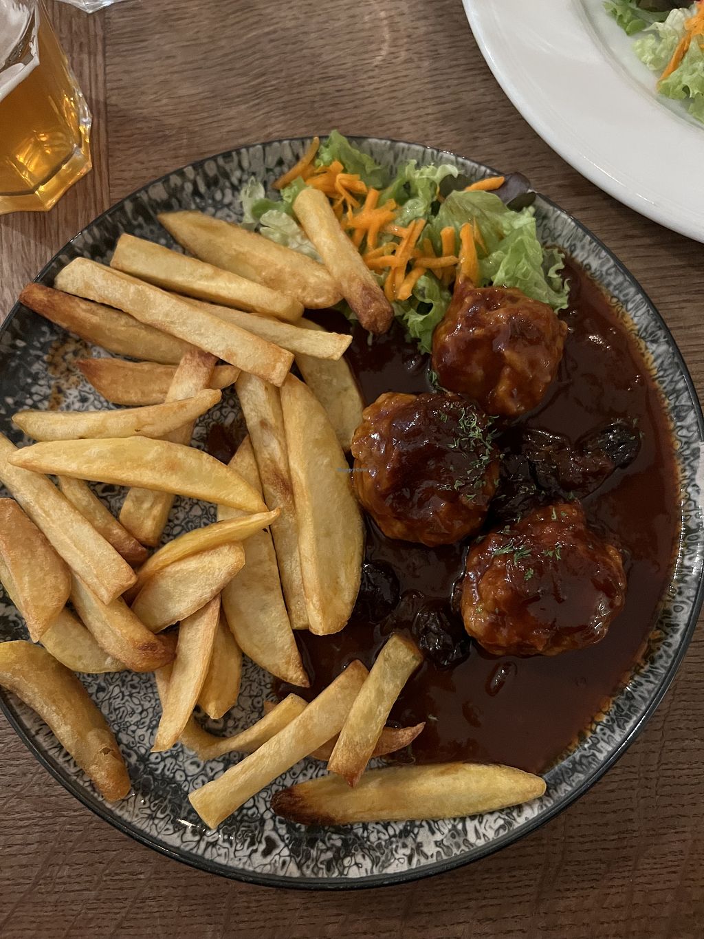 My main dish, and I loved. I'm not familiar with the belgian cuisine but apparently this is a traditional dish. The seitan balls were full of flavour and so was the sweet sauce with raisins. I asked if I could swap the fries with another side dish, maybe nuggets, but that wasn't possible. They were good tho!