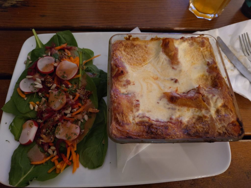 Lasagne was delicious. Food was not too fat, which can often be an issue. Unfortunately it was cold inside the restaurant and we had to wait very long for our food, however it was prepared fresh and everything was tasty. We tried aranchini, belgian balls, lasagne, seitan schnitzel, cheescake with lavender and everything was nice.