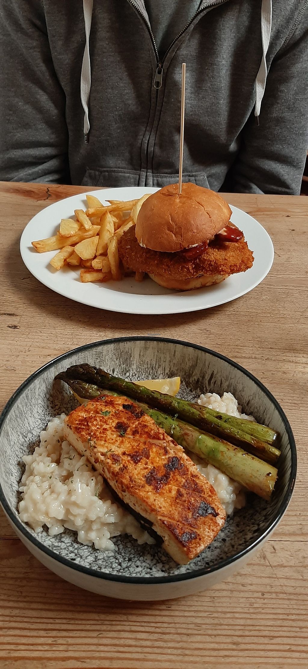 Wir hatten einmal den Seitan Burger,der sehr sehr lecker war und einmal das Risotto, das leider etwas Ausbau fähig war,es hat an würze gefehlt und Wein Risotto hin oder her, aber da war sehr sehr viel Wein drin.