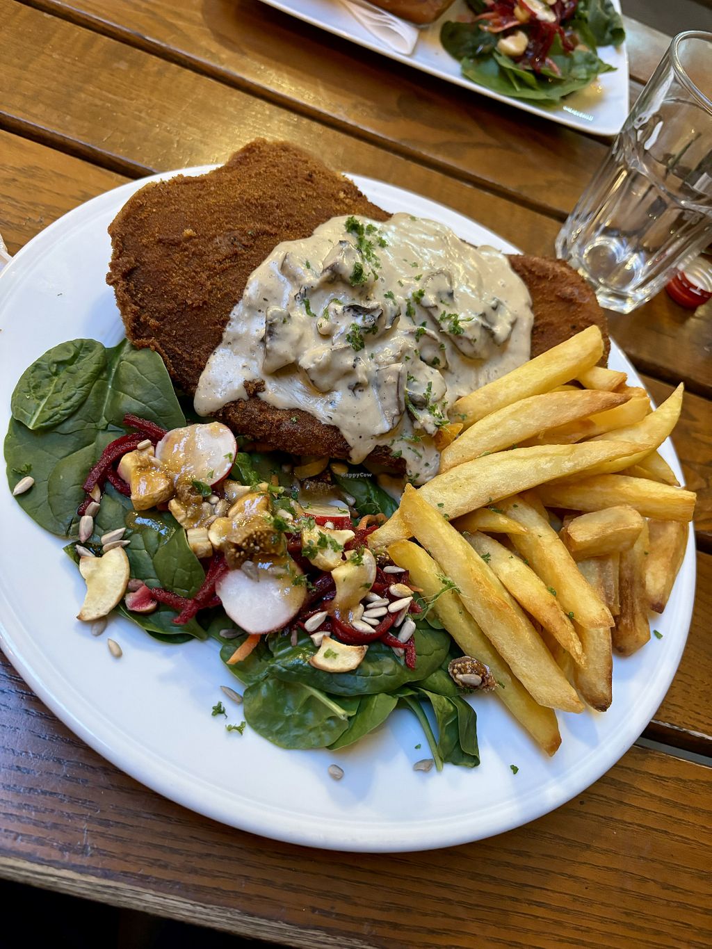 Als Starter gab es die Käse-Kroketten - knusprige Panade mit einem zarten geschmolzenen „Käse“-Kern. Danach kam das Schnitzel auf den Tisch - das war wirklich XXL, super knusprig & super lecker! Dazu richtig gute Fritten & ein abwechslungsreicher Beilagensalat mit Feigenstückchen. Die Location ist auch toll - rustikaler Charme, ganz nach meinem Geschmack. ⭐️⭐️⭐️⭐️⭐️