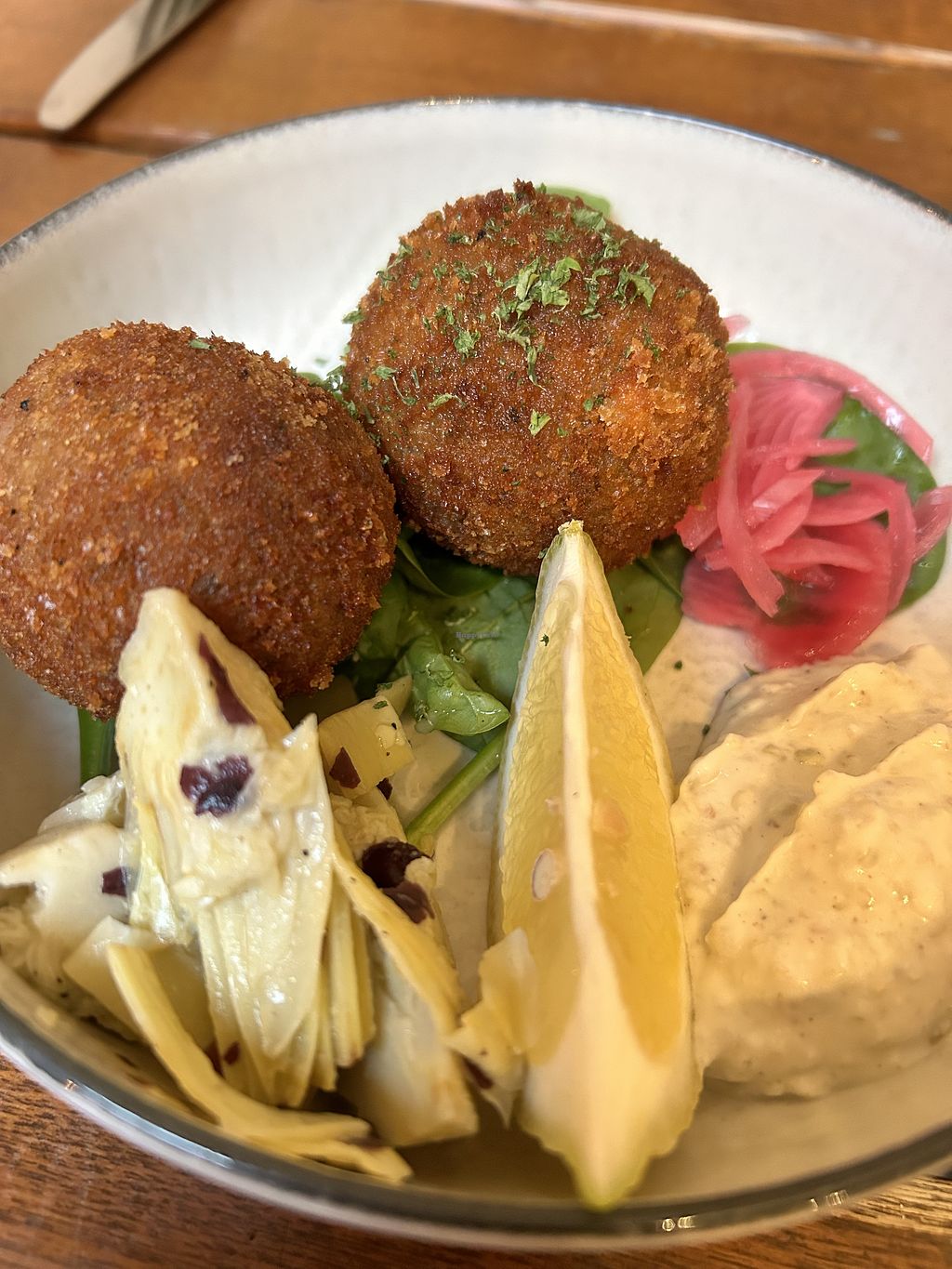 Endroit agréable, entièrement végane. La serveuse est très gentille et très sympathique. Le décor est agréable. Malheureusement, globalement, les plats étaient moyens. Les arancinis n'avaient pas de goût, les nachos étaient bons sans plus, les frites étaient bonnes et la sauce des boulets vraiment bonne. Cependant les boulets en eux mêmes n'avaient pas de goût, le burger moyen, et les lasagnes étaient correctes, sans plus. La salade n'avait pas trop de goût non plus. Décevant dans l'ensemble.