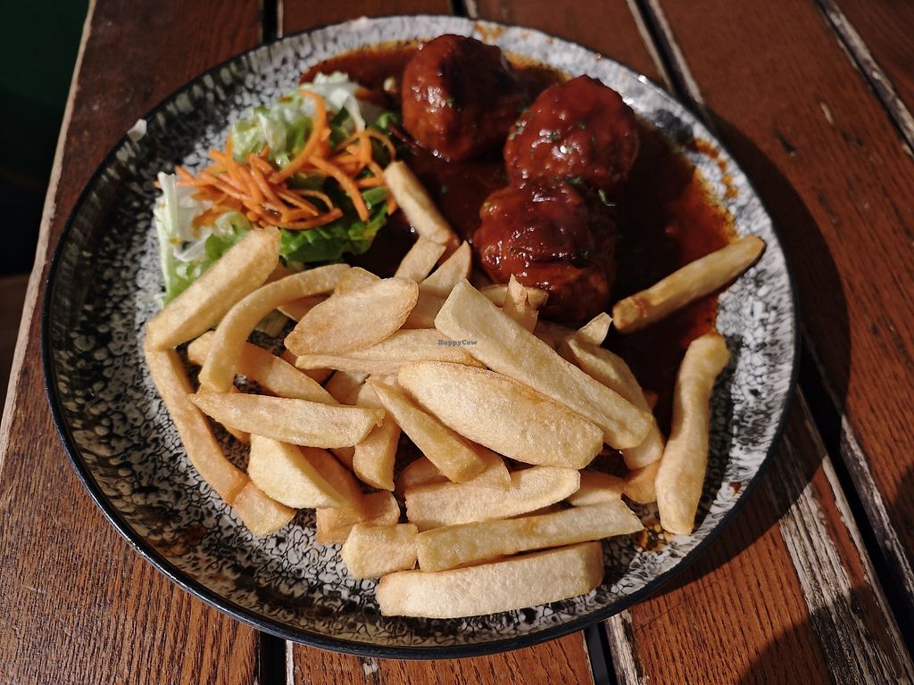 We were really looking forward trying a traditional belgian meal in vegan (Boulets sauce Liégeoise). Unfortunately the dish was disappointing, the seitan was bland and the fries were not good, the only thing that was tasty was the sauce. As a starter we had cheese croquettes which were not properly deep fried.