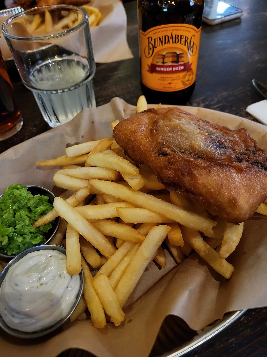 We all loved the vegan fish and chips. The taste was great. It came with fresh peas.