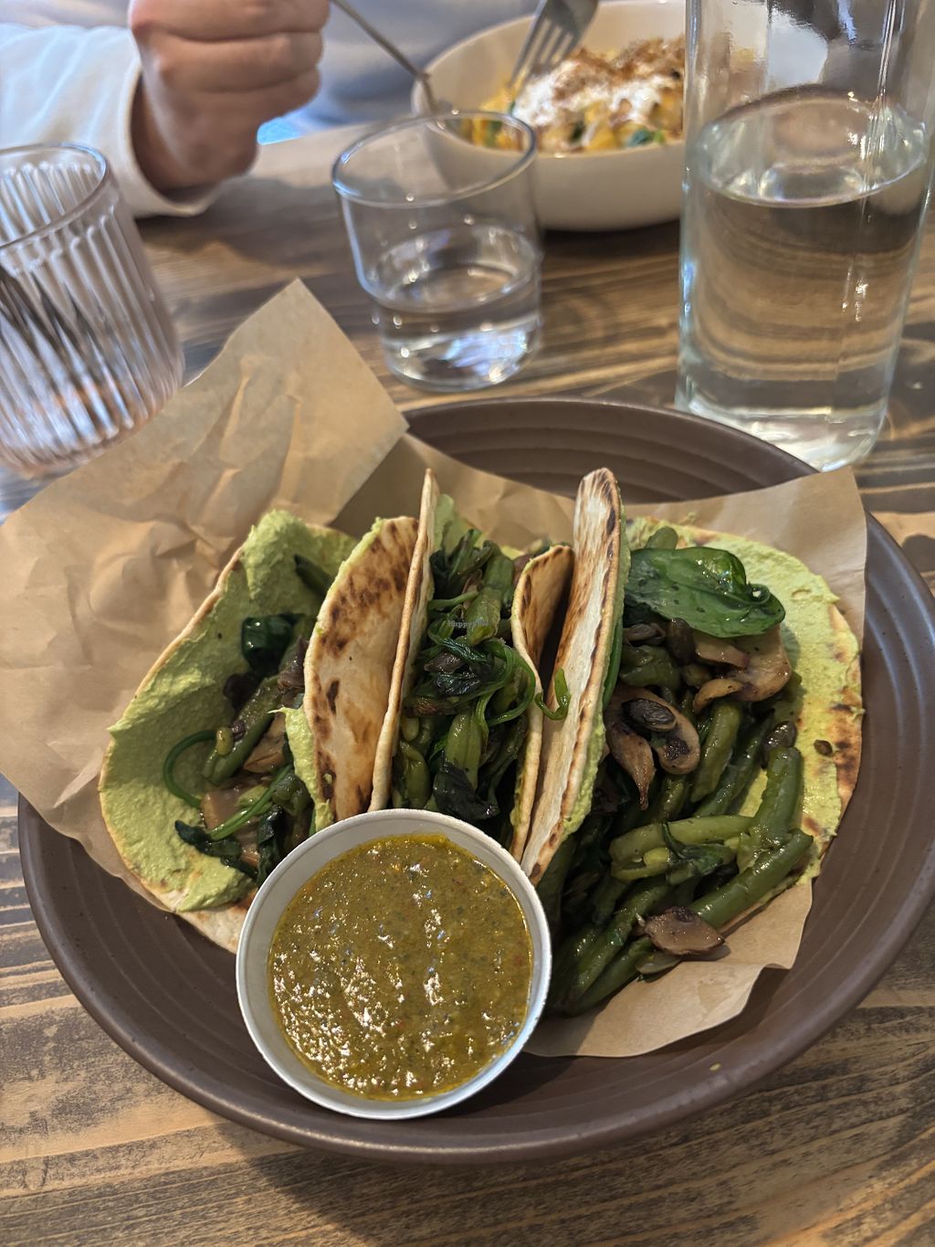 I ate the vegan tacos here and they where great (but maybe not what you think of when you hear tacos). It included many spices, asparagus, 2 sauces, mushrooms, pumpkin seeds etc🌮