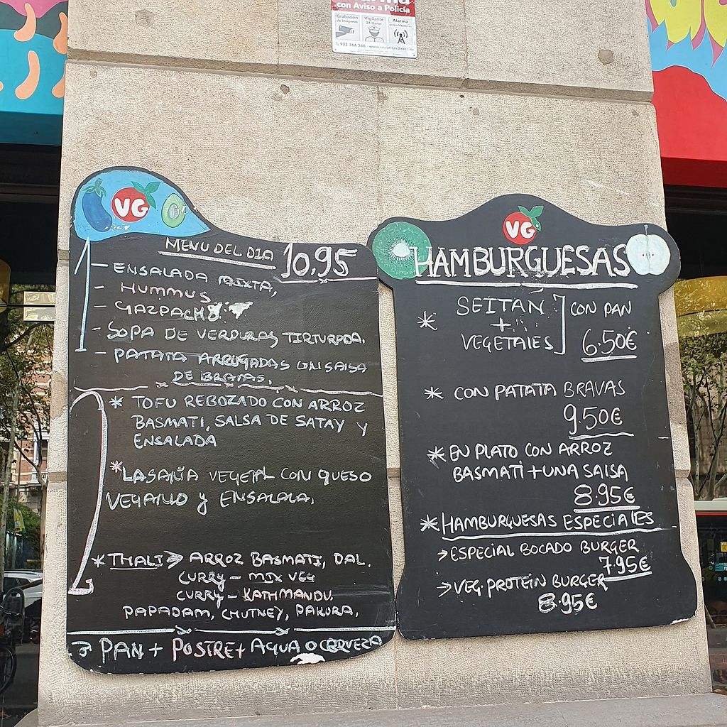 We tried the lunch menu and a hamburger and it was good. For 10'90 € they offer 2 dishes, water, bread or beer and dessert. Good price for what you get and in such a central location. We tried the gazpacho (it was tasty, with some spices but we liked it) quiche and a hamburger (not from the menu). Large portions and tasty food, although the side salad seemed a bit old. The chocolate cake was just ok. The menu is extensive and all vegan. A great option if you're in the area.