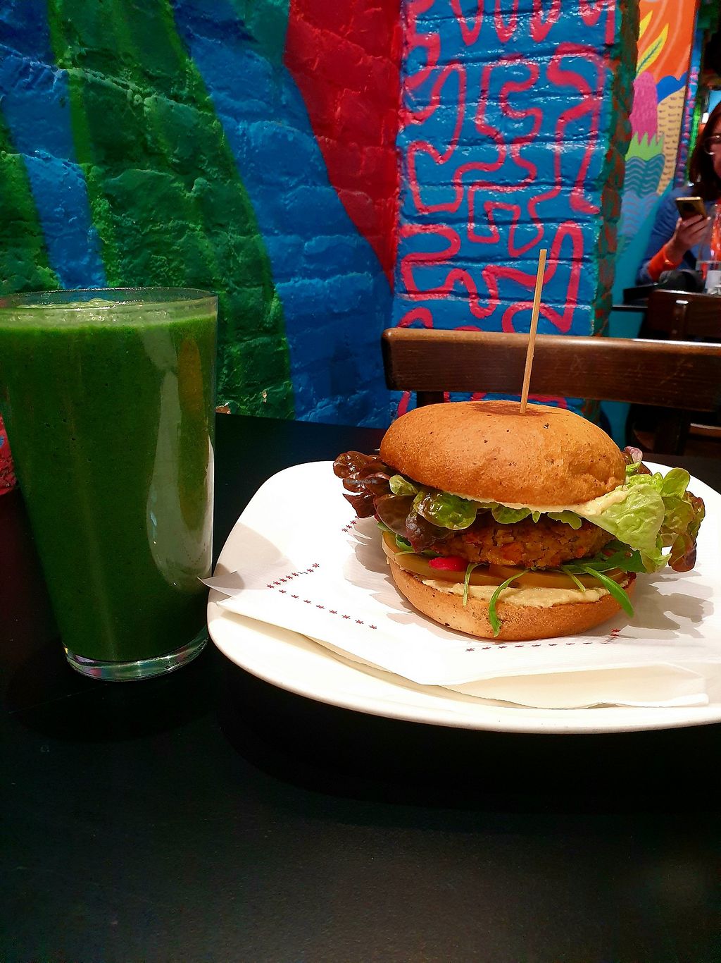 I had a 7-hour layover in BCN and decided to head to town for a short visit and sample the cuisine.... I love colours, and that's what you get at Veggie Gardens! Very colourful interior and the staff was quick.... unfortunately, I don't speak Catalan (or Spanish) and it took a while to got sorted. I ordered a green smoothie which was really good and a seitan burger which was not so good.... I would even dare to say there was hardly any seitan in that burger mix. Disappointing.