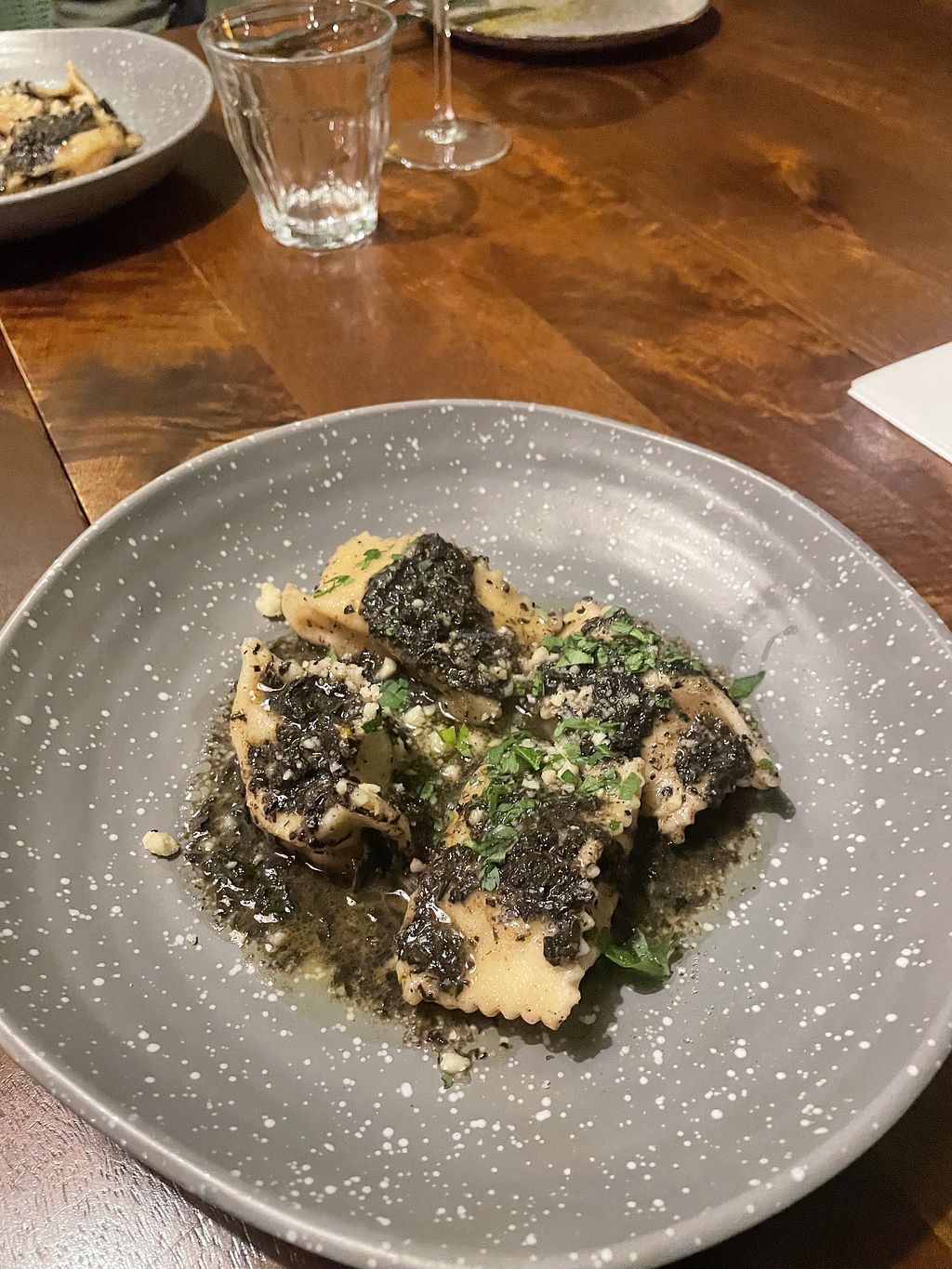 The ravioli was delicious, but very little for the price. The rhubarb dessert was really good! The staff were super friendly and you get bread before the meal