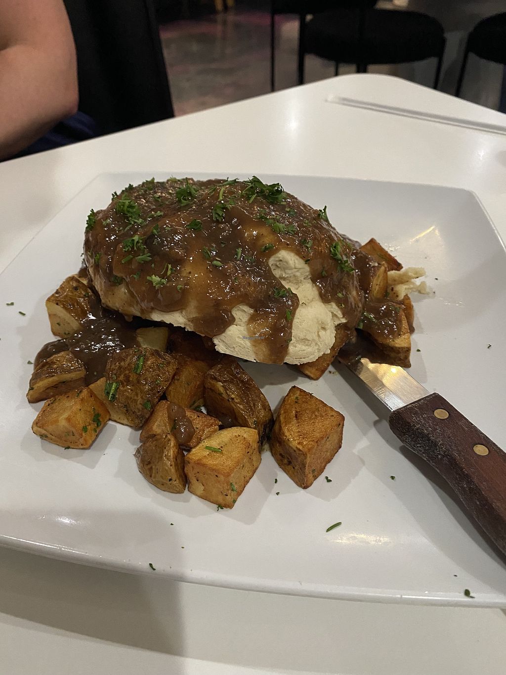 I don’t know where to start. We had dinner at The Modern Vegan tonight and we were totally blown away. This place must have the best vegan food in Vegas. The menu was impressive, everything looked so good. We finally decided on the portobello steak and the game changer burger and the food was RIDICULOUSLY DELICIOUS! Huge portions of just outstanding food! Not to mention that the place is very cute inside and our server was so warm, sweet and helpful ♥️ I think his name is Carlos. I already can’t wait to come back!