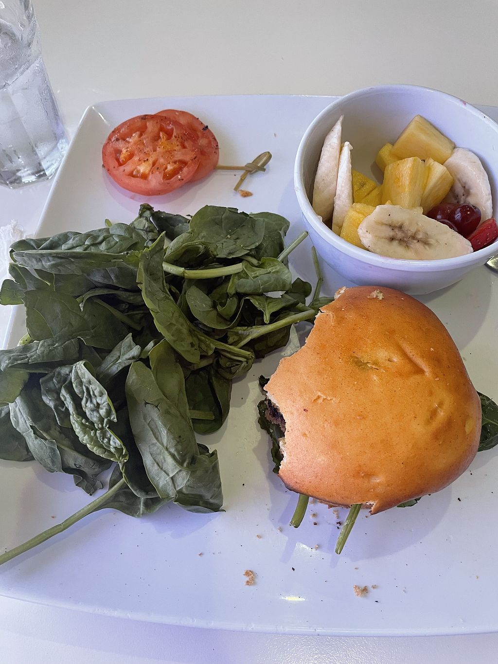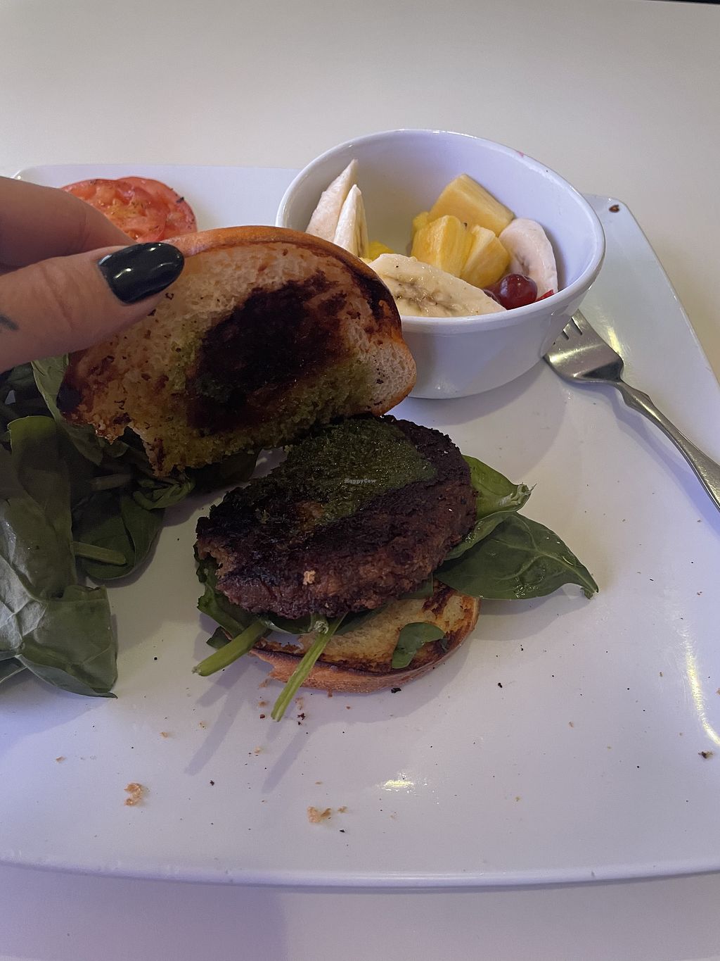 What came out for me was the saddest most overcooked burger I’ve ever seen. I asked for just greens and bbq sauce. It came out with 2 handfuls of spinach stuffed into the bun. Greens were not even dressed…. No salt, pepper, oil, nothing, a tomato, some pesto I never asked for that was dried up bc the patty sucked up all the moisture.