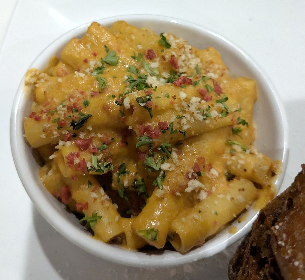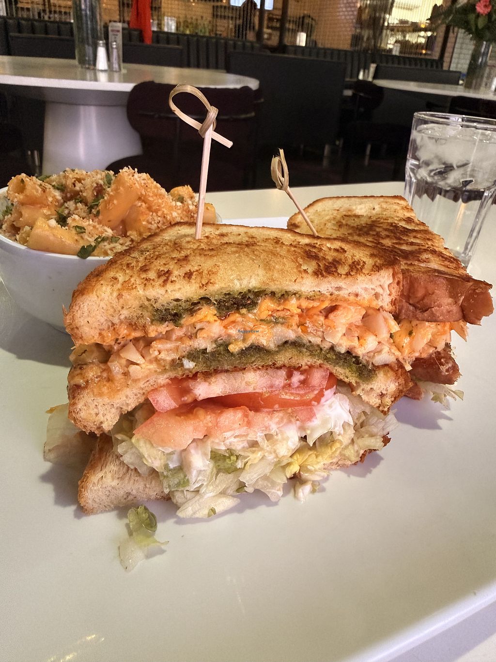 I was excited to see a vegan restaurant in Las Vegas. The menu looked interesting and varied. I was underwhelmed. I ordered the lobster melt at the suggestion of my server with an up charge side of Mac and cheese. The melt was greasy and very “mayo” heavy. The Mac and cheese had bacos on the top and a very heavy sauce. It was all very filling and the portions were large but not super. Lots of fried and beyond burger options on the menu. Great place if you want comfort food.