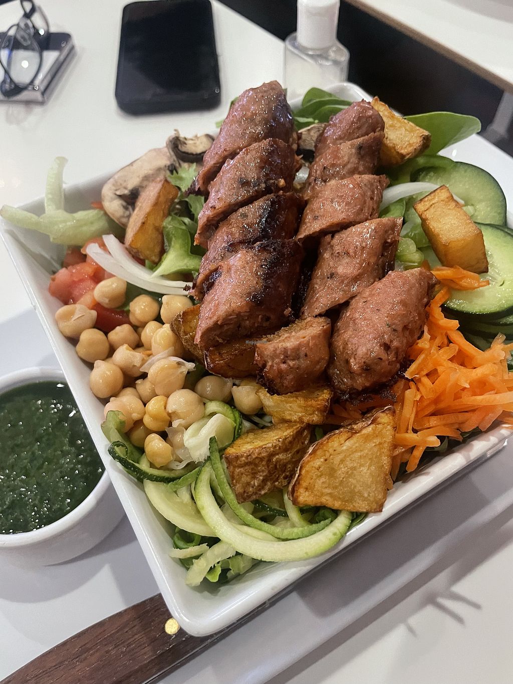 It was our first visit and I had the Philly Cheesesteak Sandwich and it was delicious. My wife had the Nachos as a meal. The food was very tasty, the presentation was very good, and the service was excellent. We intend on visiting The Modern Vegan every time we are in Las Vegas. I highly recommend this restaurant.