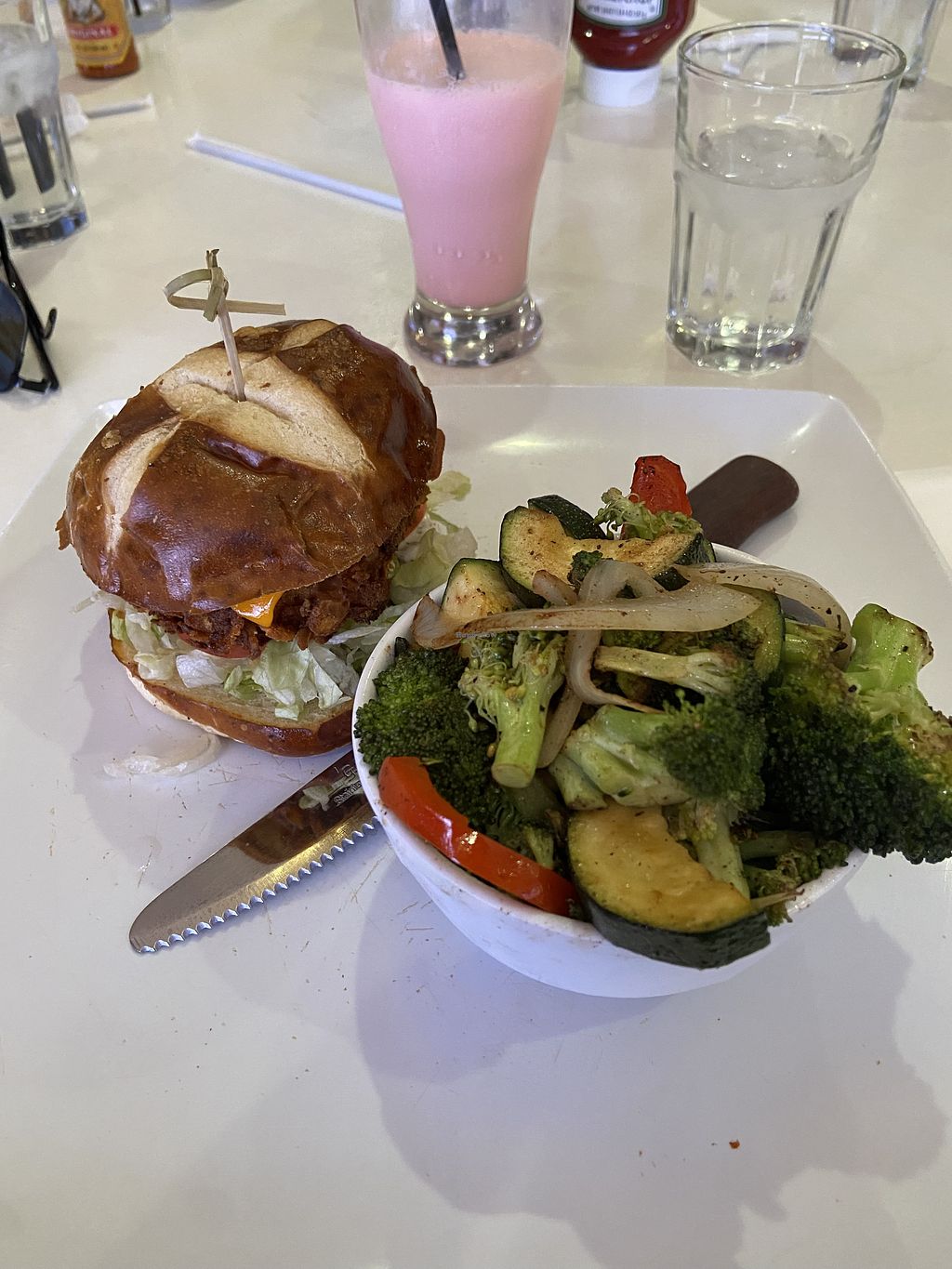 I went twice over Labor Day weekend with 2 different people. One was a meat lover who thought his Philly Cheesesteak sandwich was terrific. I ordered the Spicy Ch’kn sandwich one day and the Bacon Ch’kn ranch on spinach wrap the next. Just crazy how good their food is! Very modest outside and very nice inside!!! I highly recommend it.