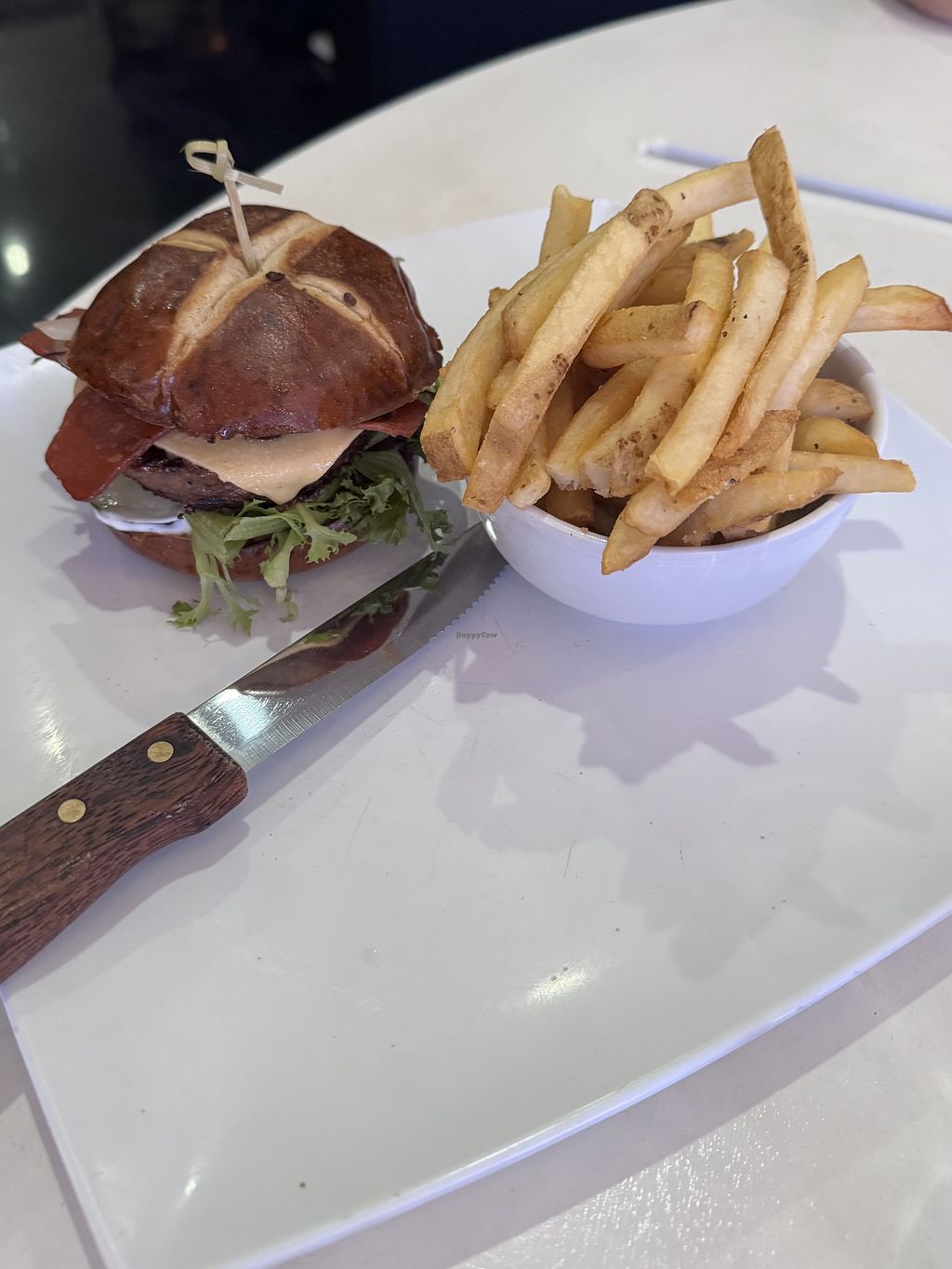 Read moreTook a server over 5 minutes to come to our table and it was dead. I don’t eat soy and asked the server what may be a good option. She said, “impossible and beyond burgers are both soy free.” While I know beyond is, impossible has always been made of soy. The waitress said the owner told her impossible was soy free now. Well that’s wrong and only a simple google search away. If you’re making vegan food, know your facts.